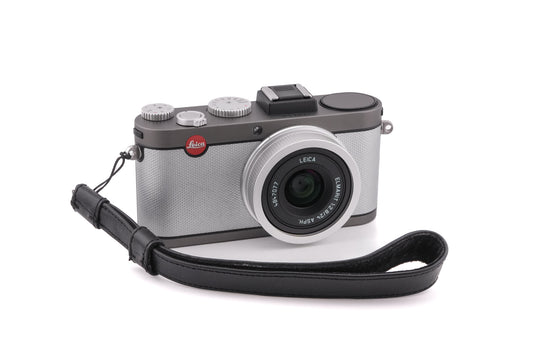 Autofocus digital compact camera introduced by Leica. It has a 24mm equivalent focal length, a 2.7" rear LCD, and a built-in pop-up flash. Metal and plastic body available in grey with silver leatherette.
