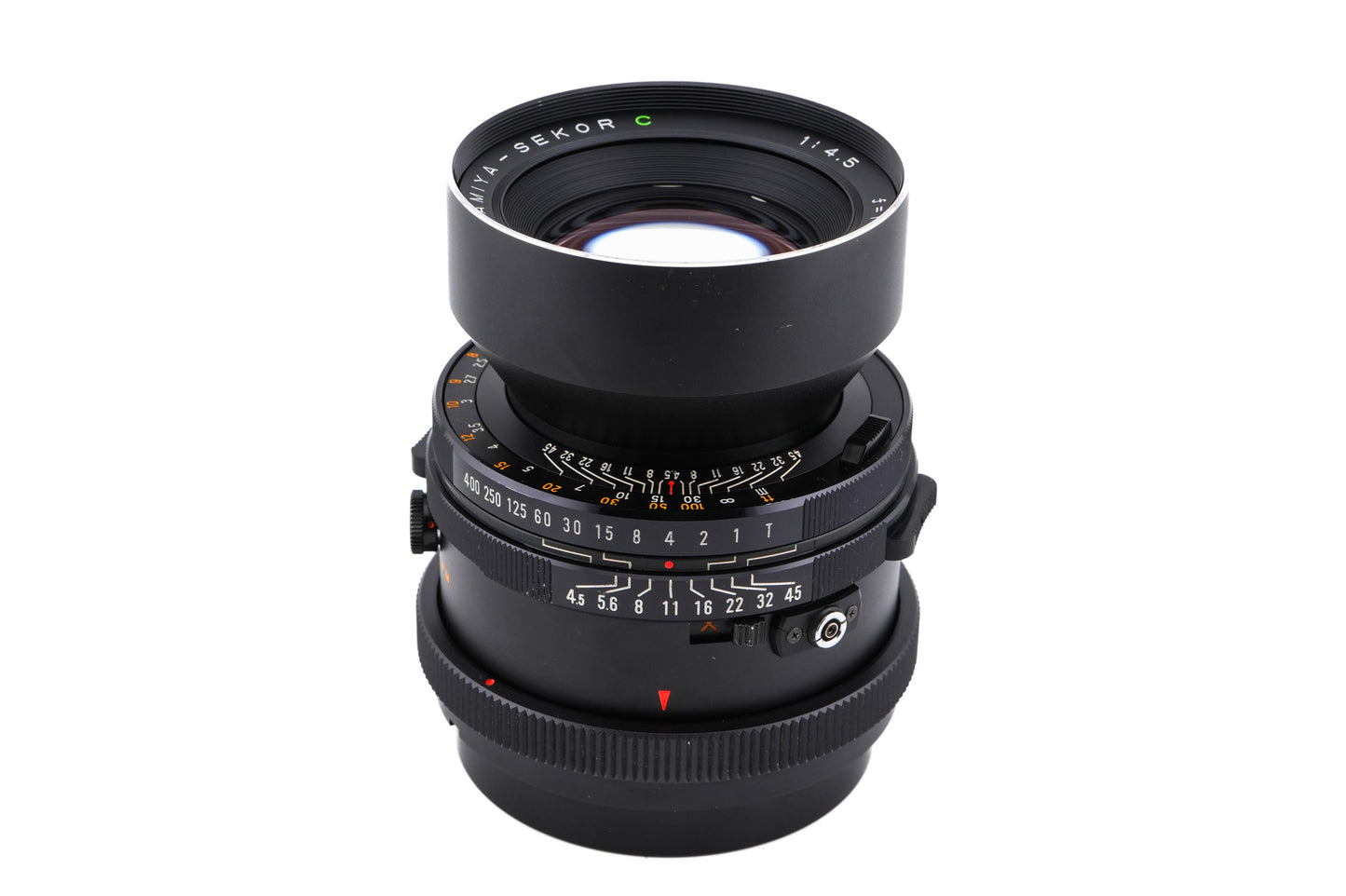 Manual focus telephoto lens made for RB67 120 SLR cameras by Mamiya starting in 1974. It gives the equivalent field of view to a 90mm lens on 35mm full frame. Metal body available in black.