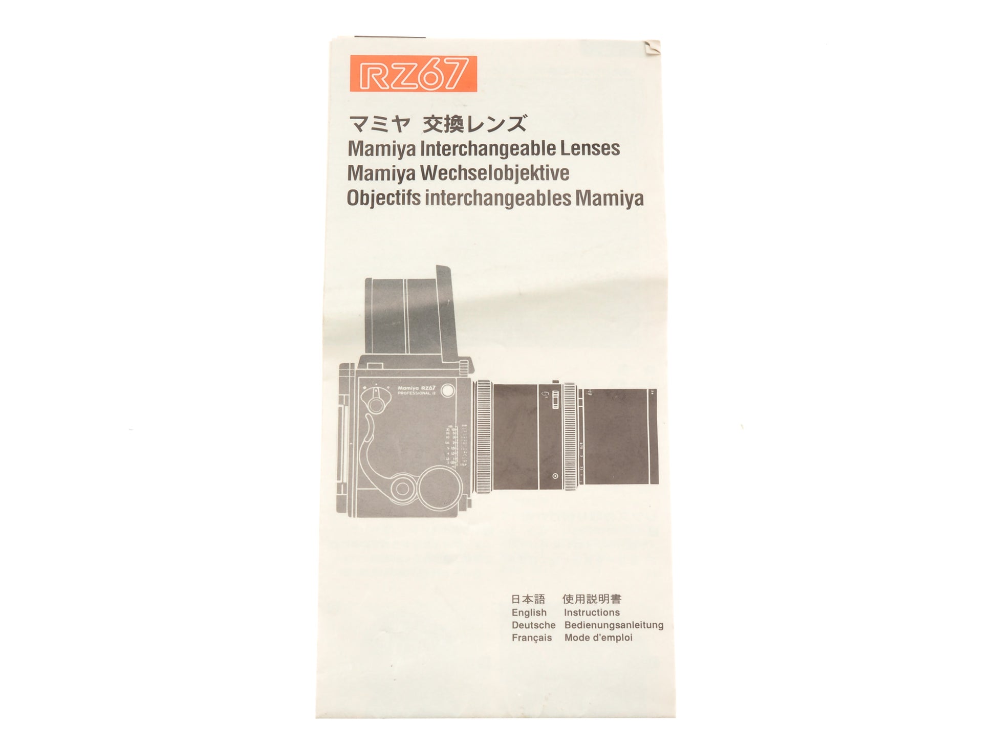 Mamiya RZ67 Interchangeable Lenses Instructions - Accessory