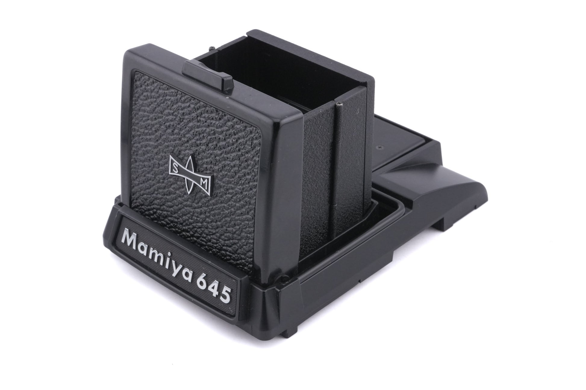 Waist-level viewfinder made for M645 bodies by Mamiya. It features a magnifier and a sports finder. Metal body available in black.