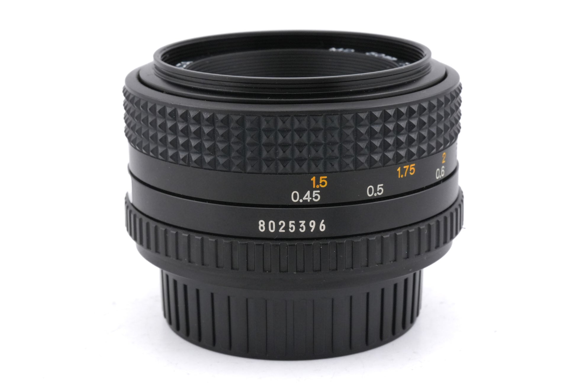 Manual focus normal lens made for MD/SR mount 35mm SLRs made by Minolta. This lens is from the later MD range, supporting advanced metering modes and fully-programmed exposure. Metal body available in black.