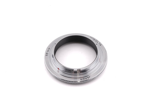 Reverse lens mounting ring made by Minota. It allows you to mount lenses with 55mm filter threads backwards on your SR/MD-mount camera. Metal body available in silver.