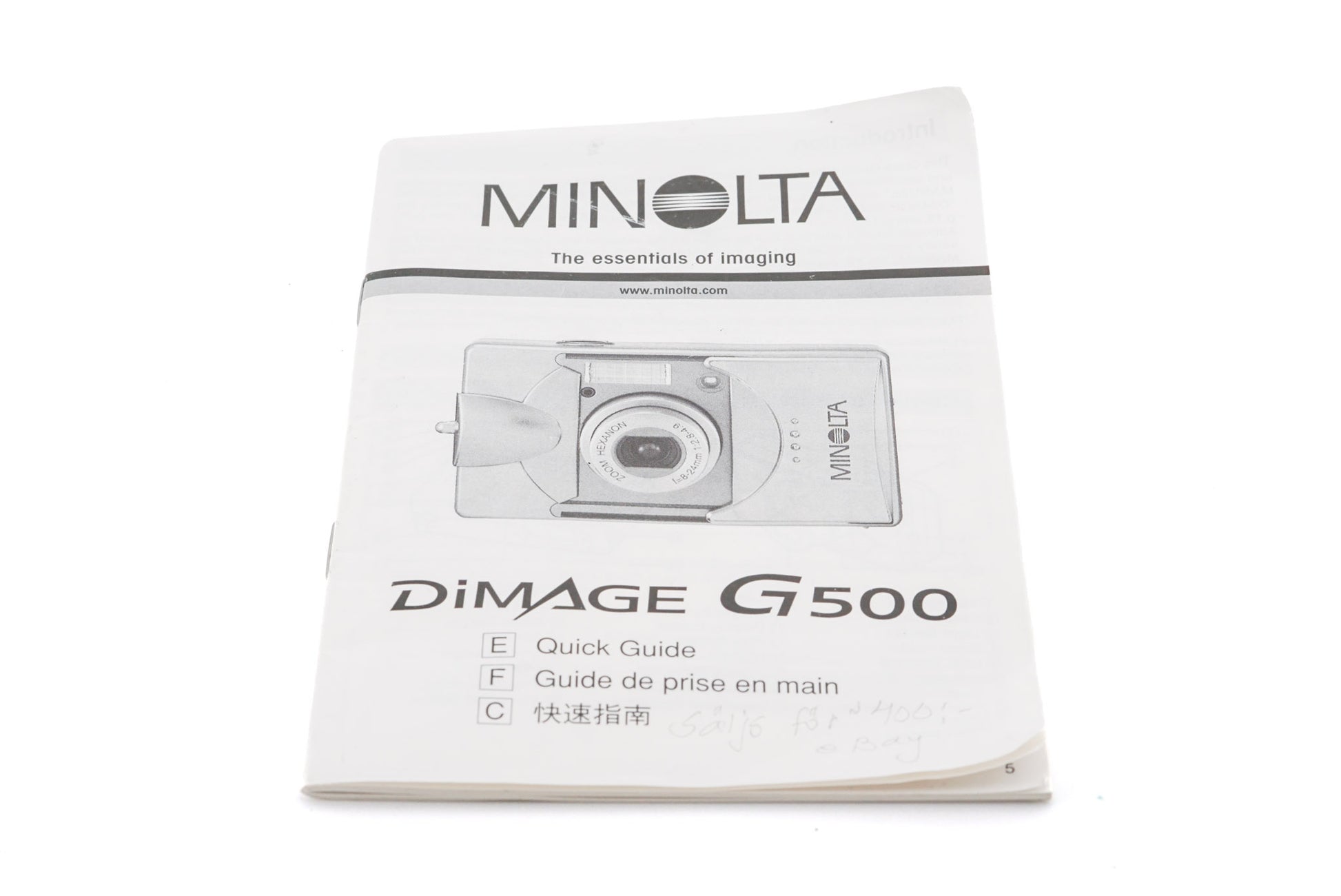 Instructions for the Minolta Dimage G500 digital camera. Paper body.