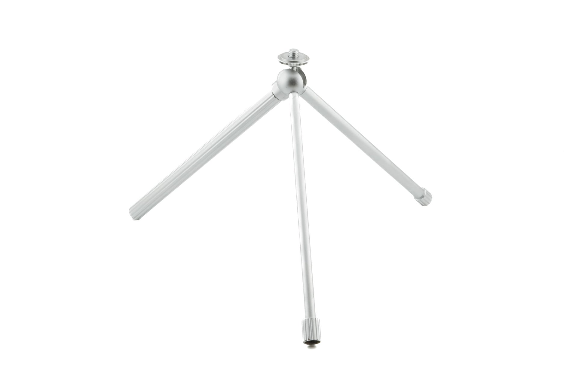 Tripod made by Minox for the subminiature Mionx cameras. Foldes into itself and has a release cable that also screws into one of the legs for easy storage. Metal body available in black.