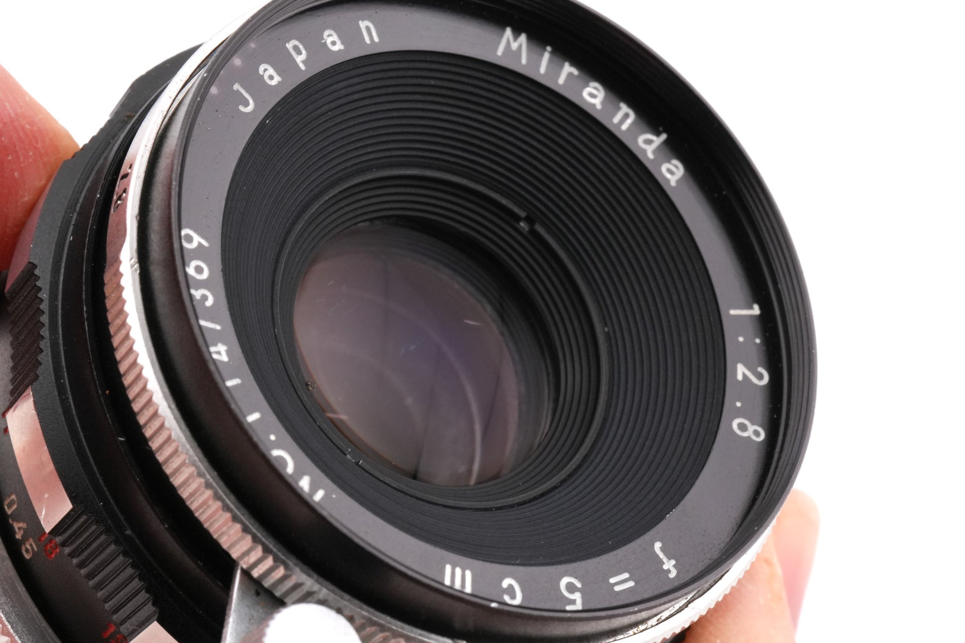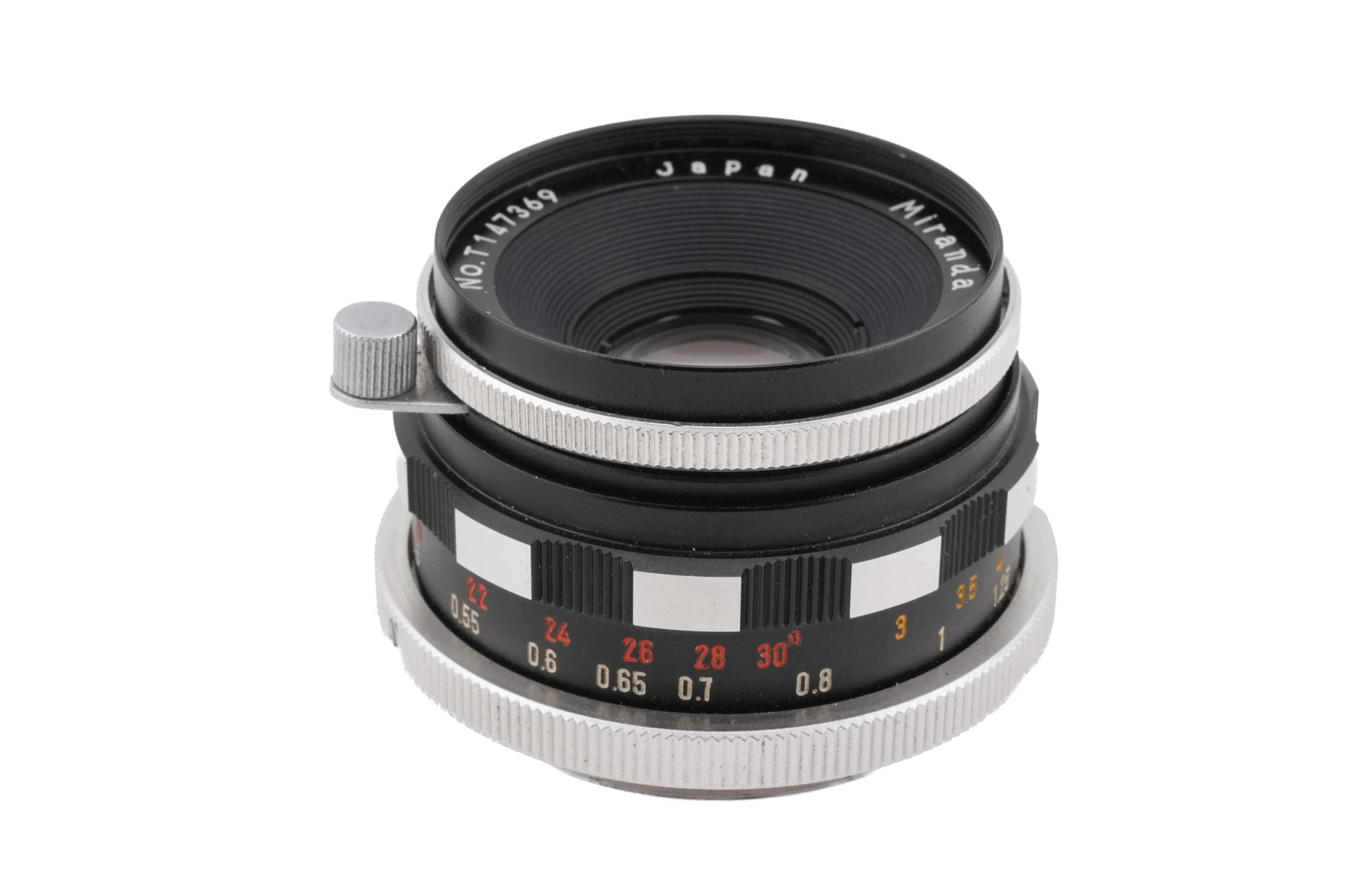 Manual focus normal lens made by Miranda for the 44mm screw mount. Usable on early Miranda SLRs like the Miranda D. Manual aperture operation.
