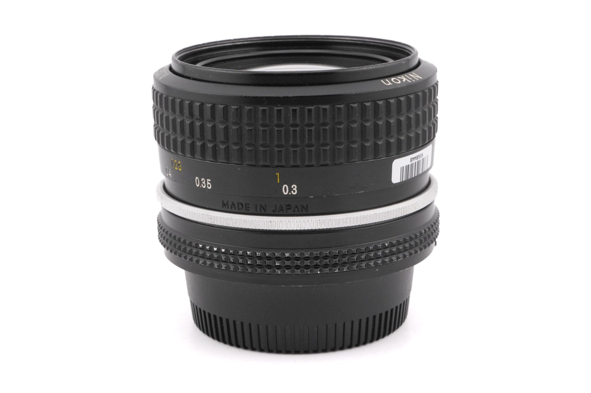 Manual focus wide angle lens made for F-mount SLR cameras by Nikon starting in 1974. It has the bunny ear metering prongs and AI ridge, so it will meter properly on all manual Nikon cameras but cannot be used with the advanced program modes of later models. Metal body available in black.