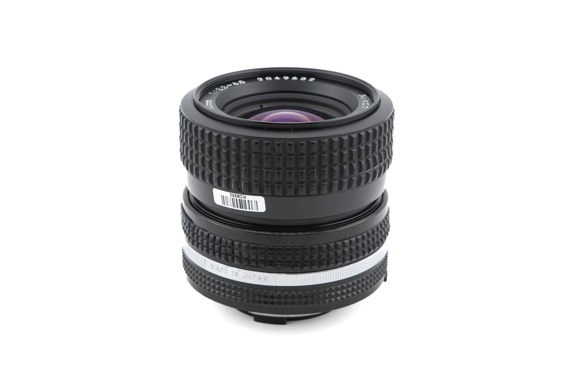 Manual focus zoom lens made for F-mount 35mm SLR cameras introduced by Nikon starting in 1984. It has the bunny ear metering prongs, AI ridge, and AI-S indent so it will meter properly on all manual focus Nikons and can be used with the advanced program modes of later models. Plastic and metal body available in black.