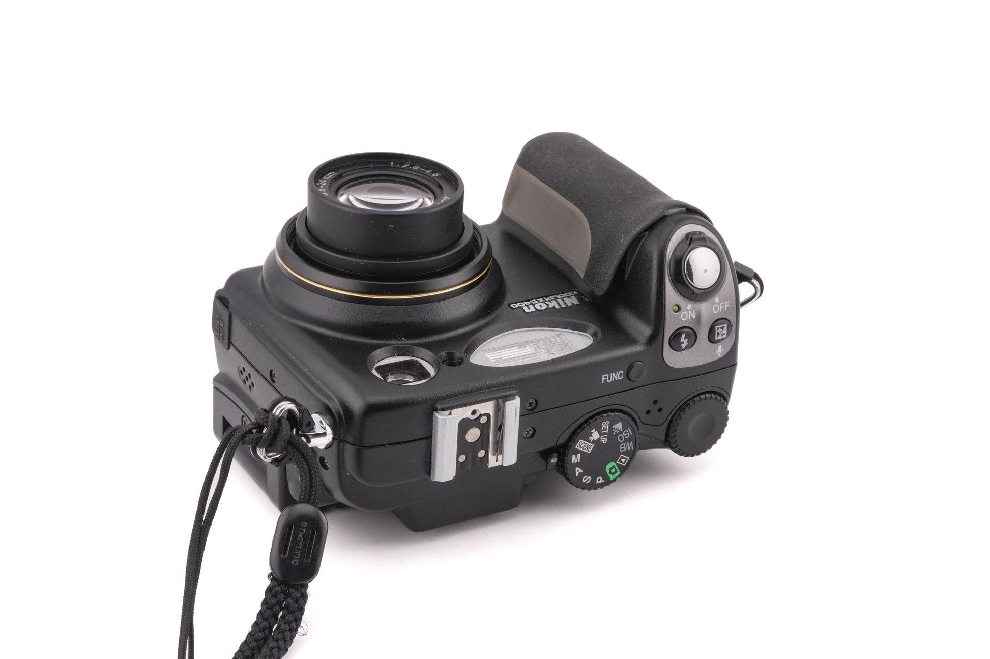 Autofocus compact digital camera released by Nikon in 2003. It has a 28 - 116mm equivalent focal length and records 640 x 480 15 fps movie clips. It has a 1.5" fully articulating rear LCD. Plastic body available in black.