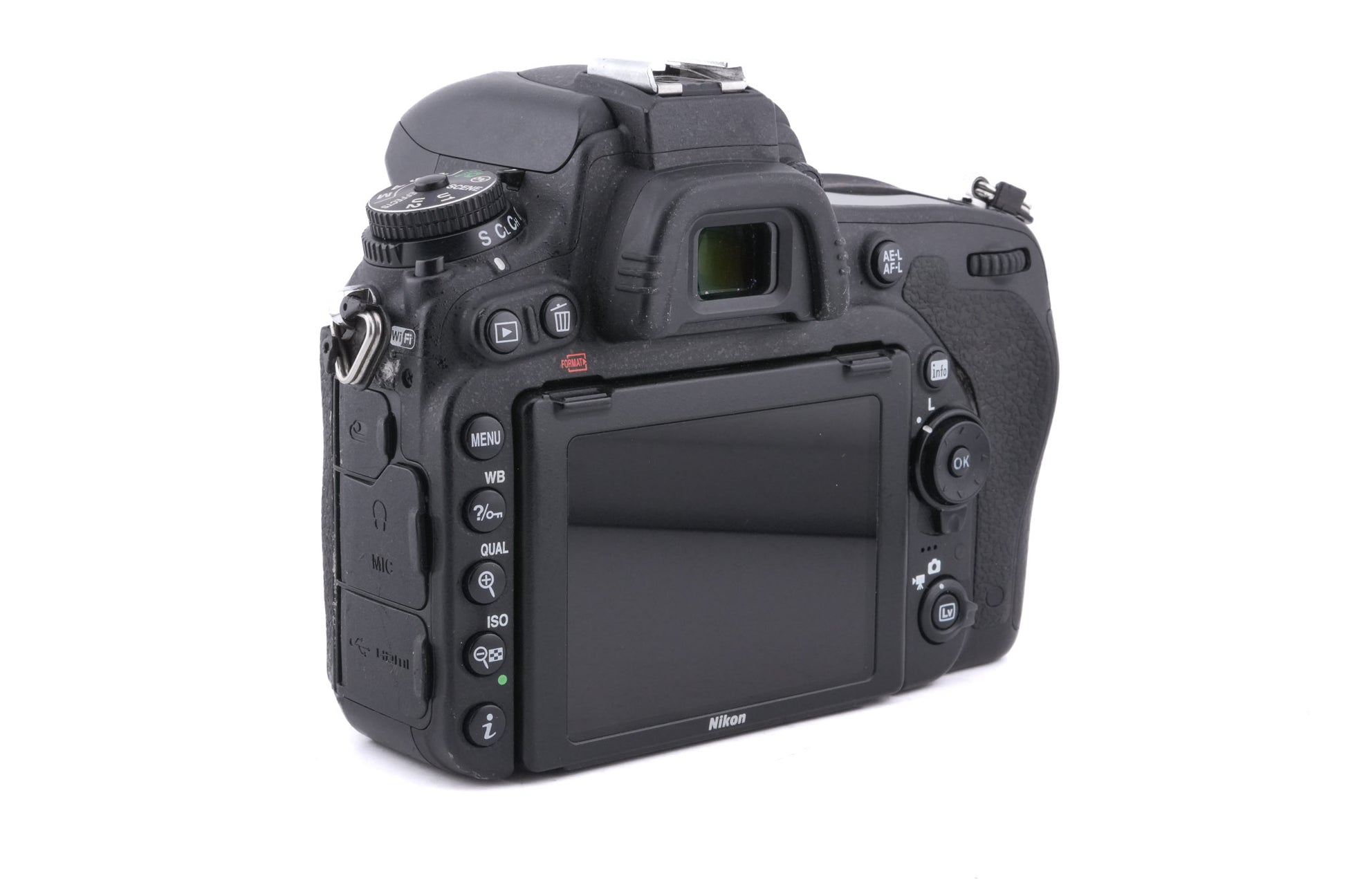 Autofocus F-mount digital SLR camera released by Nikon in 2014. It features 51 autofocus points, 2 SD card slots, a 3.2" tilting rear LCD, and a 1/200s flash sync speed. It can record 1080p video. The viewfinder has 100% coverage. Magnesium alloy body available in black.
