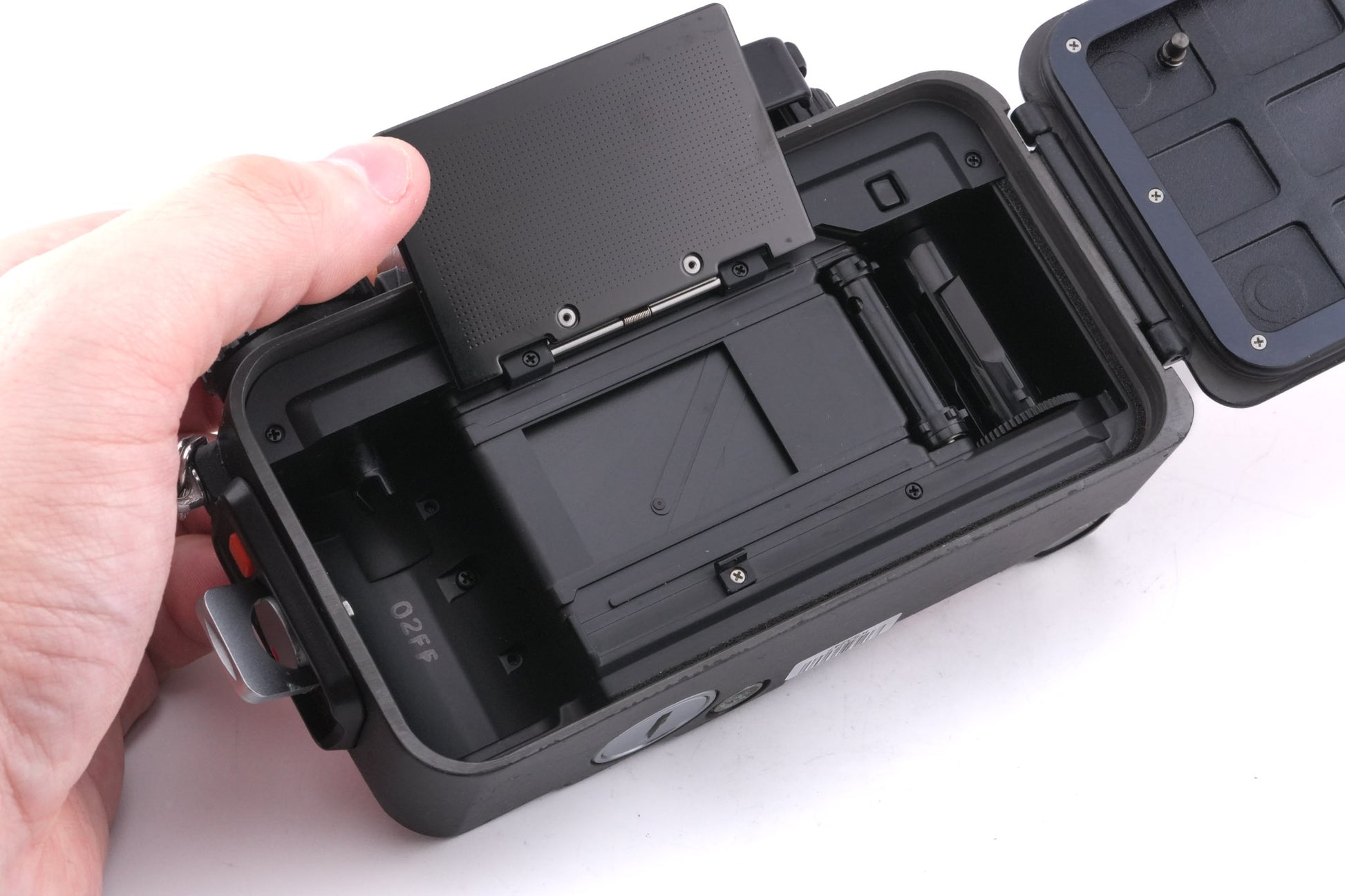 Manual focus 35mm underwater camera released by Nikon in 1984. It has a rugged aluminum alloy body and interchangeable underwater lenses. Some lenses only work underwater, and some work either above or below water. The shutter is electronically controlled & quartz-timed, and the camera has automatic exposure. The camera was originally rated for depths up to 50m. Metal body available in black/orange/green.