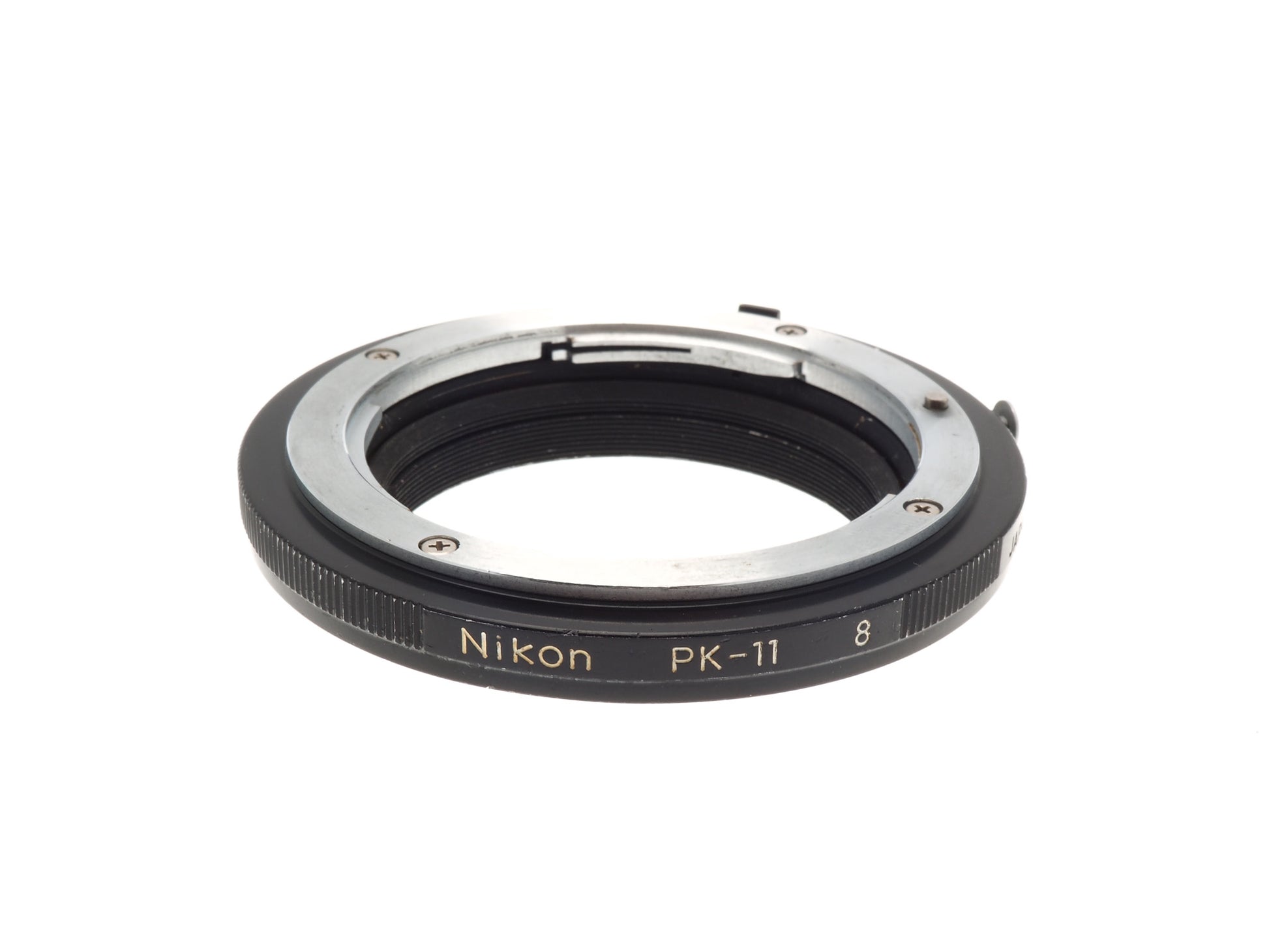 Auto extension ring made for Nikon F mount SLR cameras and lenses by Nikon. Has an 8mm extension. Will not meter properly with Pre-AI lenses and bodies. Metal body available in black.