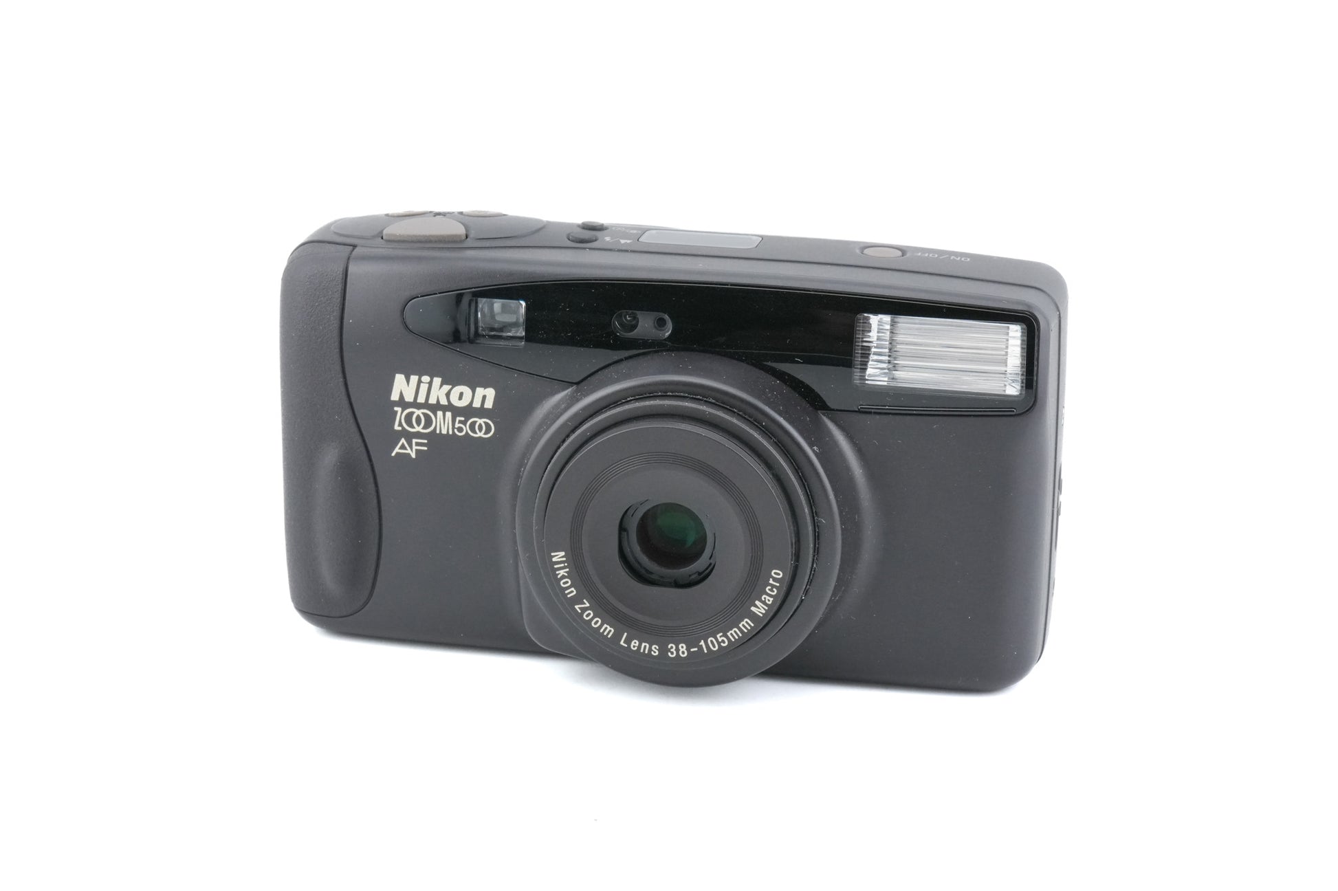 Nikon point and shoot film camera. Introduced in 1995. It has infinity lock, flash and self-timer.
