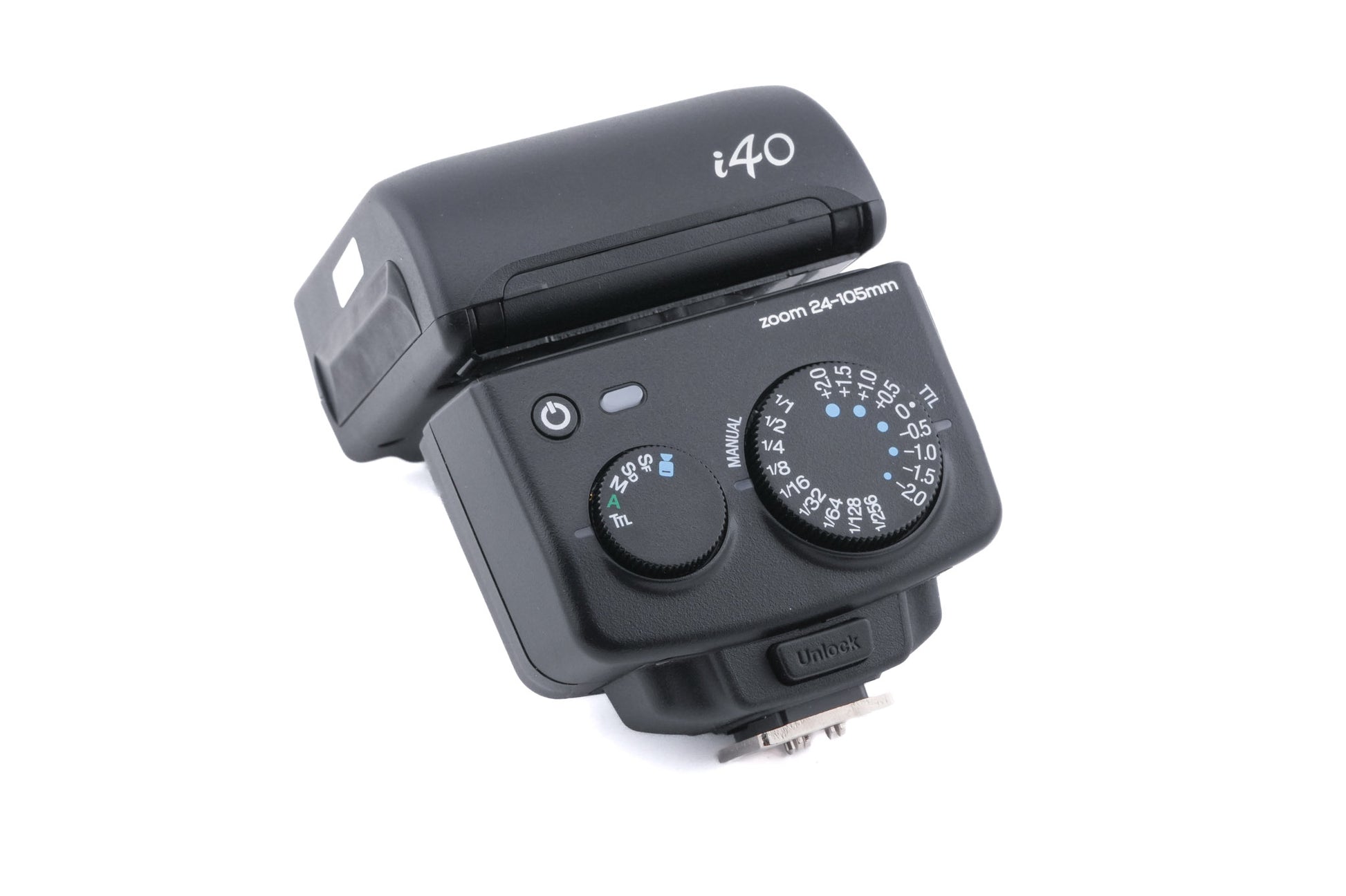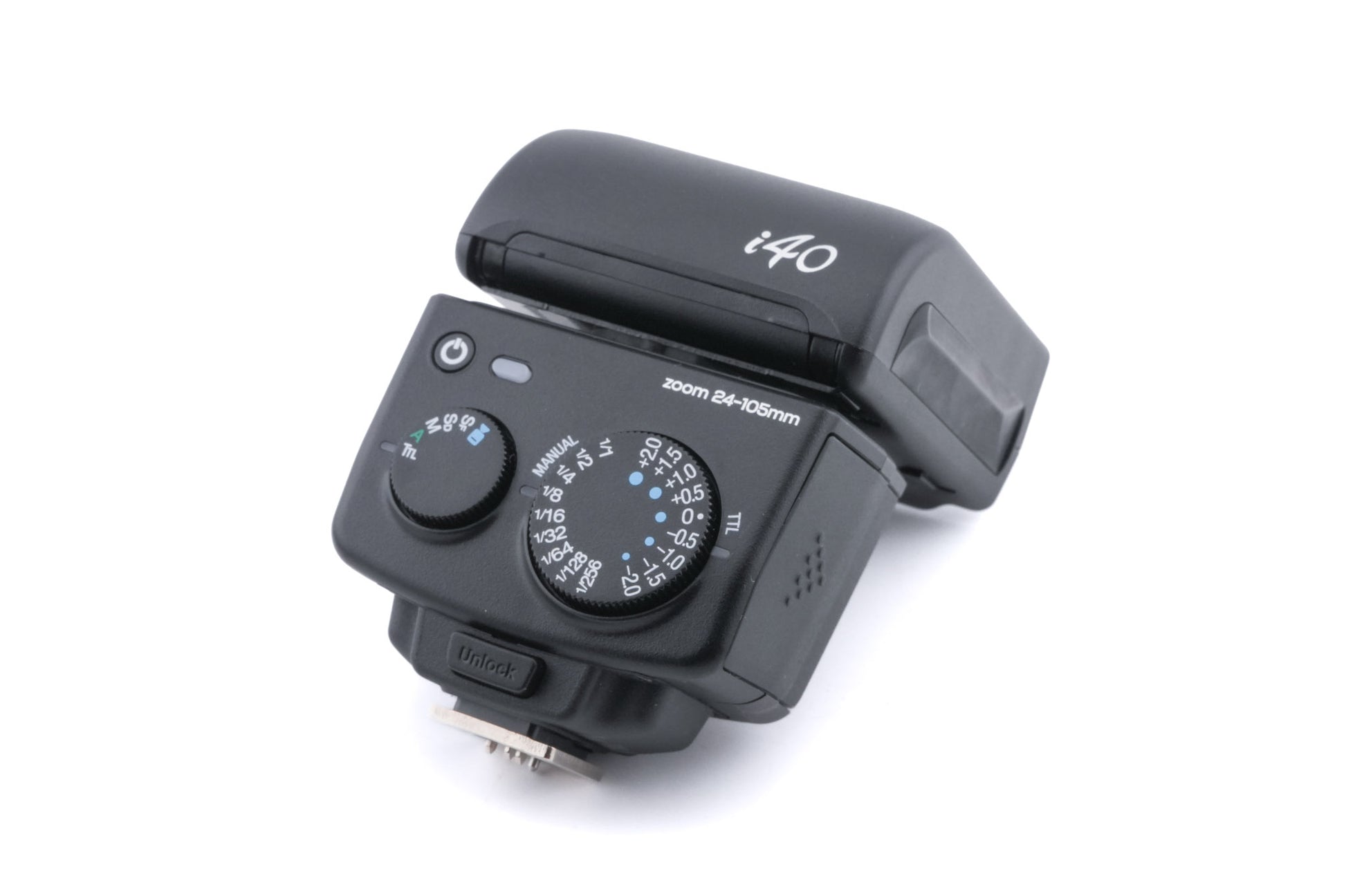 Compact flash made by Nissin for Fuji X system. Built-in diffuser and bounce card. Video light and two simply selector dials to operate the whole unit. Black plastic body.