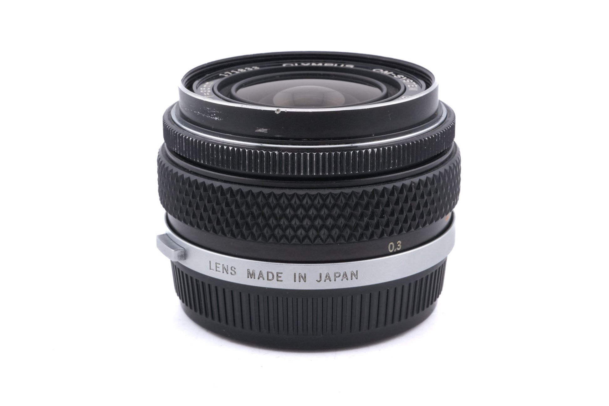 Manual focus wide-normal lens made for OM-mount 35mm SLR cameras introduced by Olympus. Metal body available in silver & black.