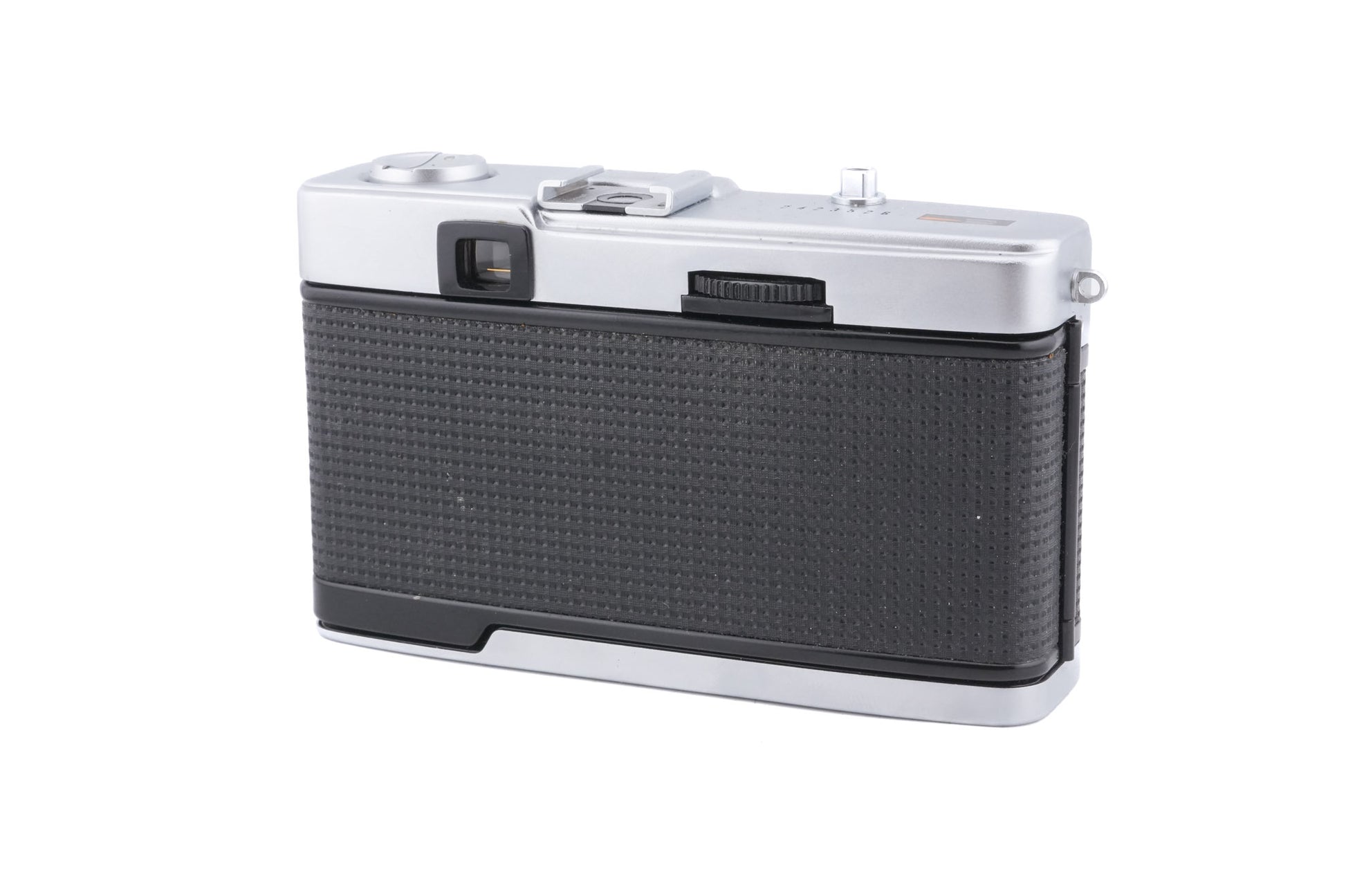 Zone focus 35mm point-and-shoot camera released by Olympus in 1967. The camera was aimed to be as simple as possible for tourists to take travel photos. It has only two shutter speeds and a selenium exposure cell to take fully programmed exposures. All the user has to do is focus. The aperture ring is only for flash use. Metal body available in silver.