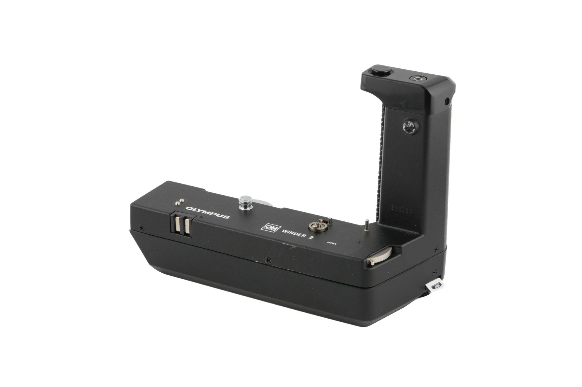 Motor winder made for OM-bodies introduced by Olympus. The Winder 2 is an upgrade of the Winder 1 which will automatically advance the film a frame and recock the shutter, in about the same time as the Winder 1 (.3s), but it also allows sequential shooting of up to 2.5 frames per second. Metal and plastic body available in black.