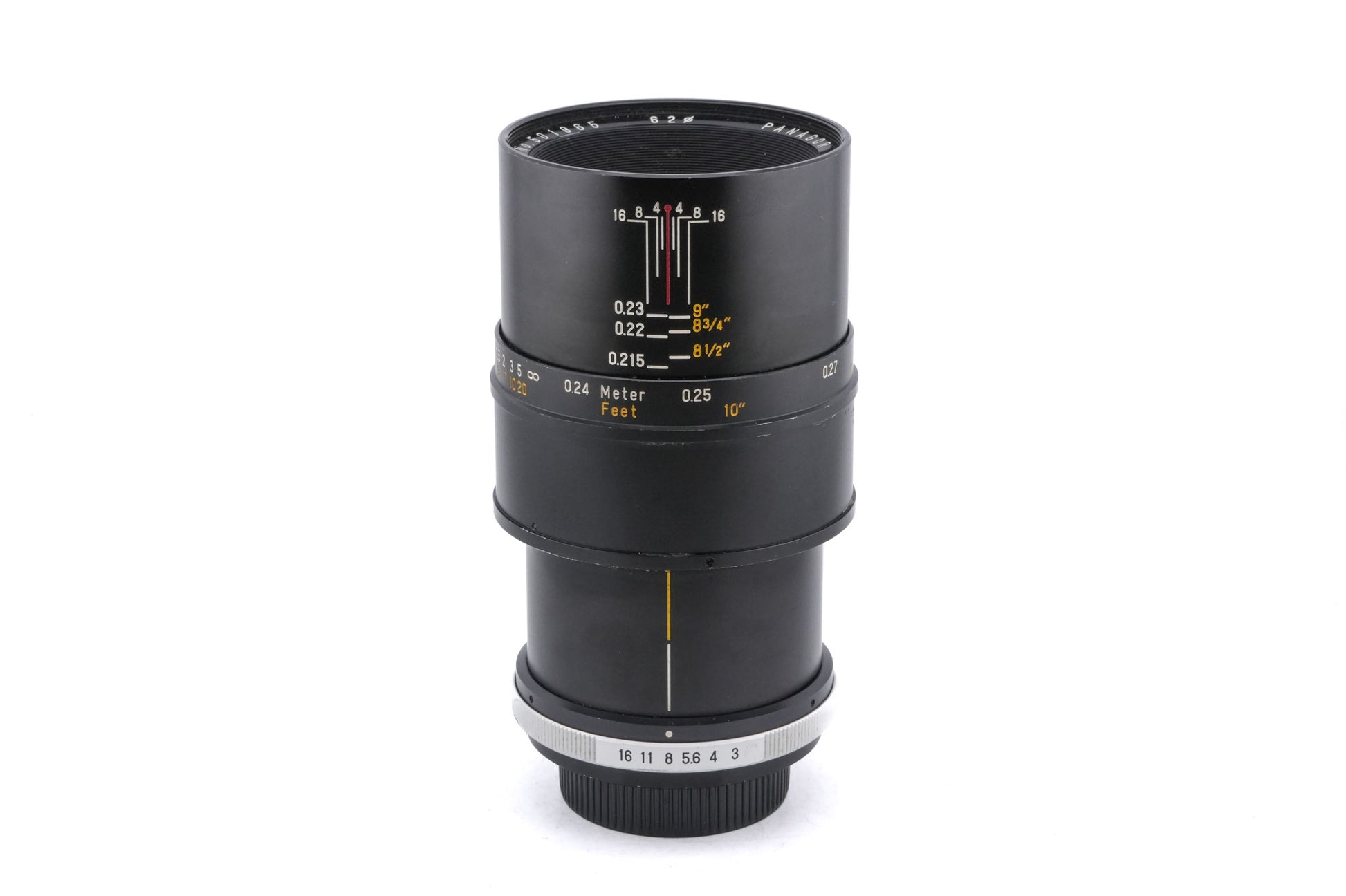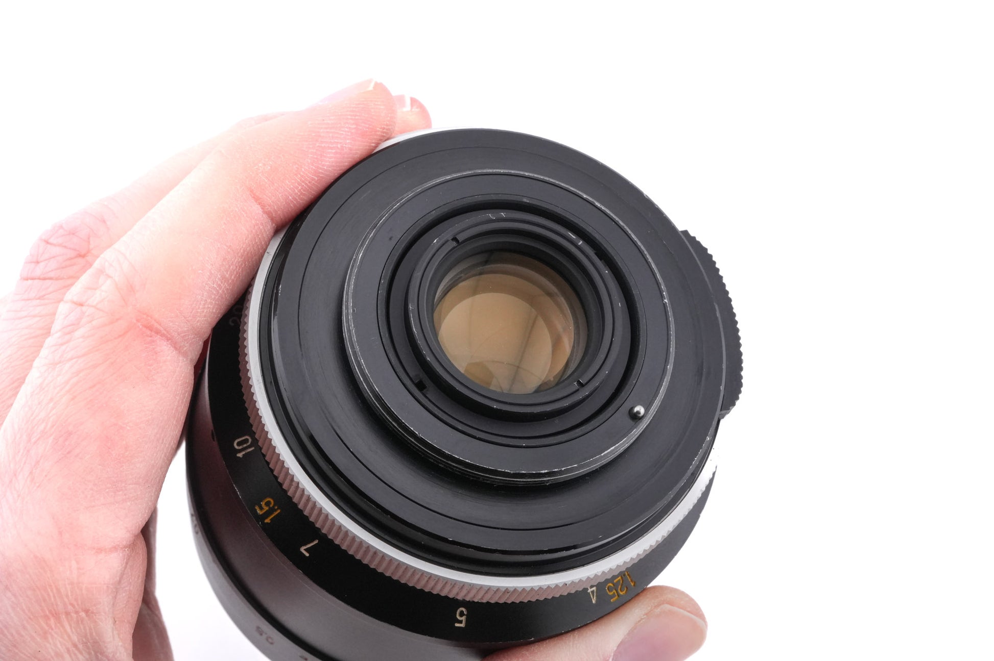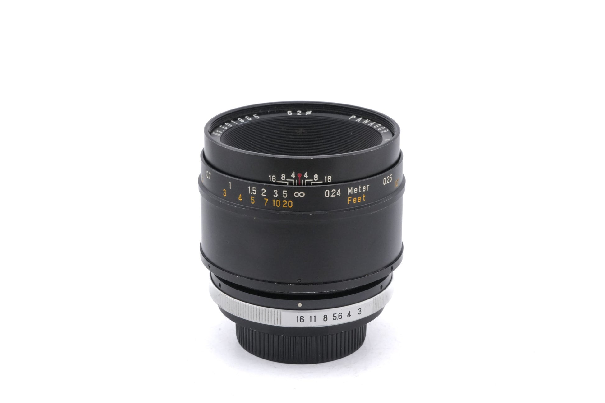 Manual focus normal macro lens made for M42 screw mount SLRs introduced by Panagor. Capable of 1:1 reproduction ratio without extension rings. Metal body available in black.