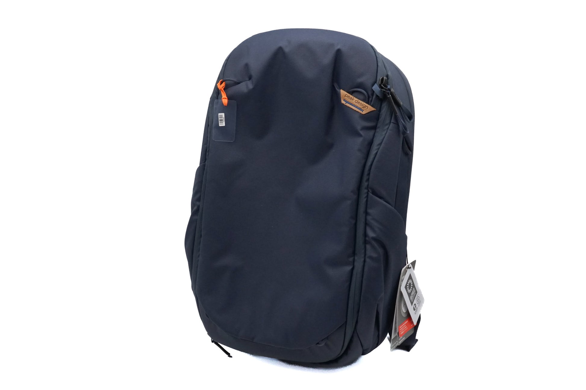 Rugged, expandable travel backpack made by Peak Design. Meets international carry-on size requirements in expanded (33L) and compressed (27L) form. It has expansive side pockets for water bottles, tripods, etc. And it has a padded laptop + tablet sleeves. Weatherproof fabric available in black and blue.