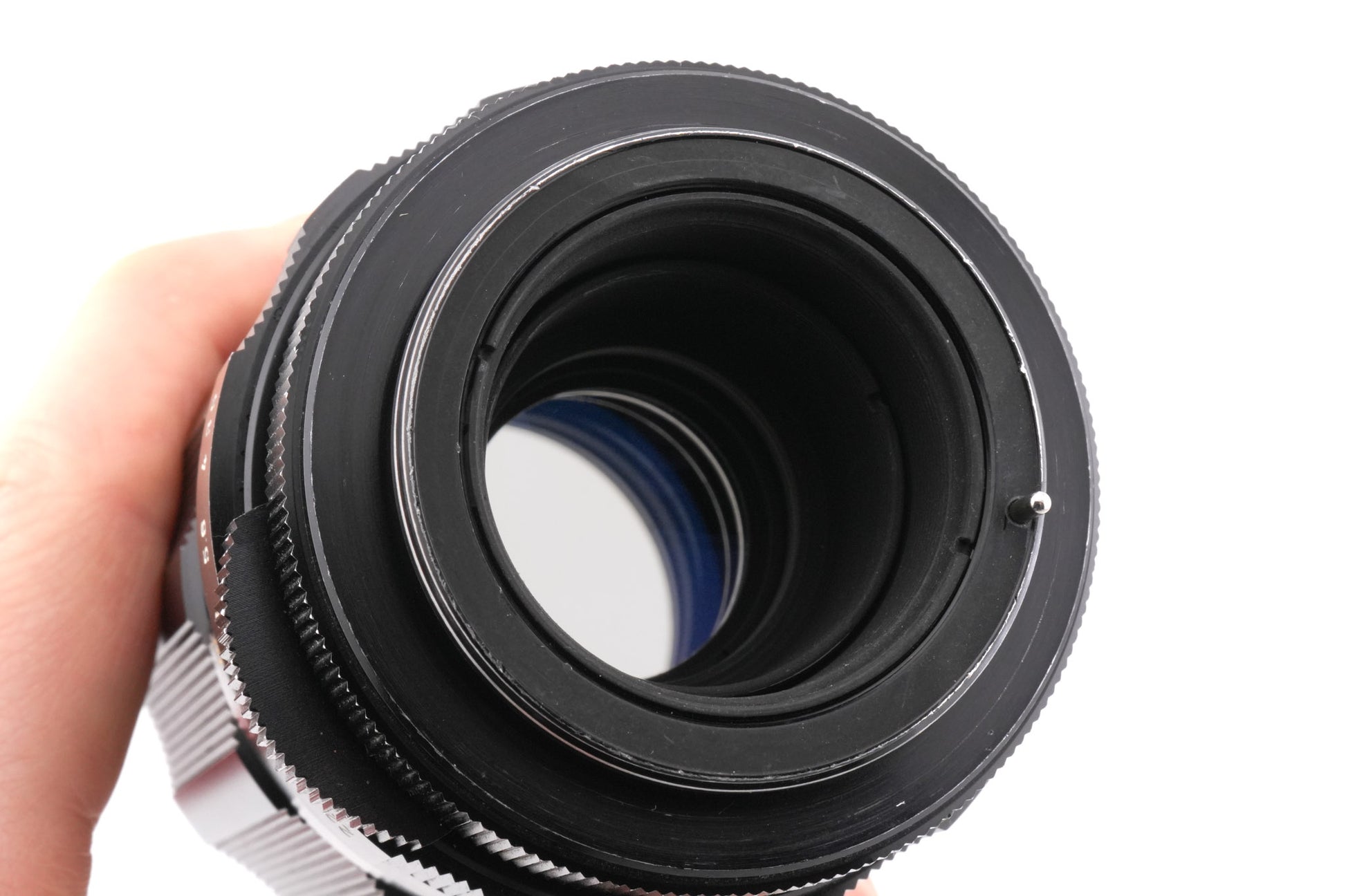Manual focus telephoto prime lens made for M42 screw mount SLR cameras by Pentax. Metal body available in black.