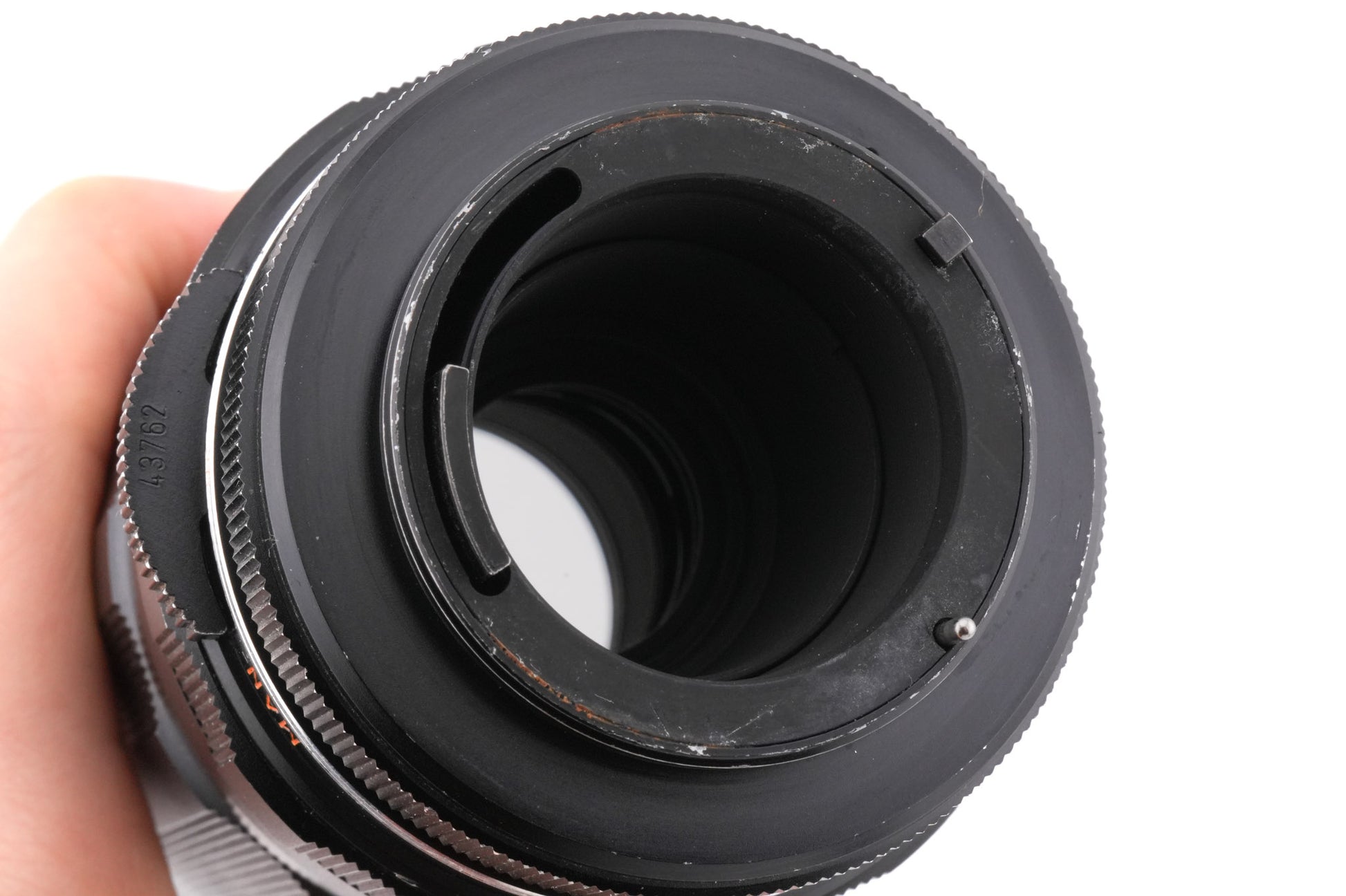 Manual focus telephoto lens made for M42 mount SLR cameras by Pentax in 1971. This is the second version of the 200mm f4, which added multi-coating and open-aperture metering with compatible bodies. Metal body available in black.