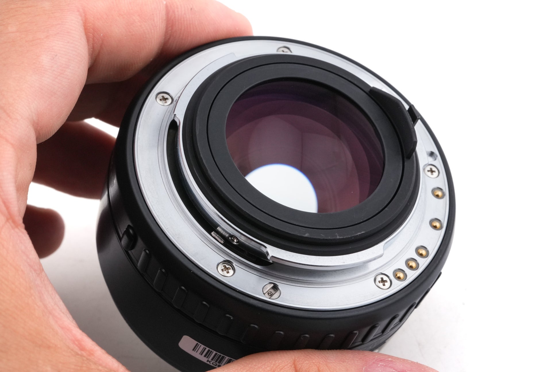 Autofocus normal lens made for K-mount (D)SLR cameras by Pentax. Plastic body available in black finish.
