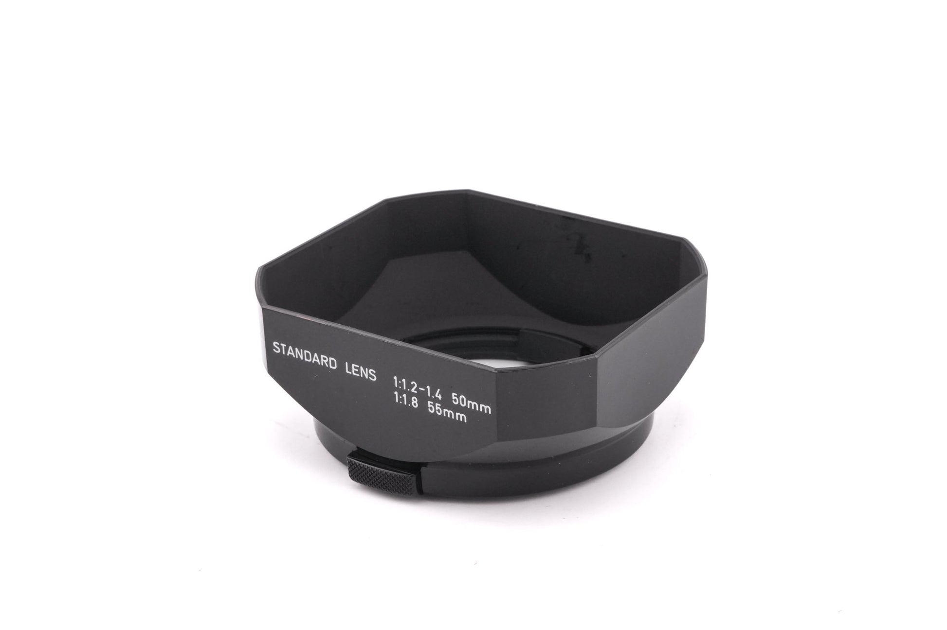 Lens hood made by Pentax for all lenses with 49mm filter threads. It is designed for the 50mm f1.2 - f1.8 lenses. It attaches via a clamp. Plastic body available in black.