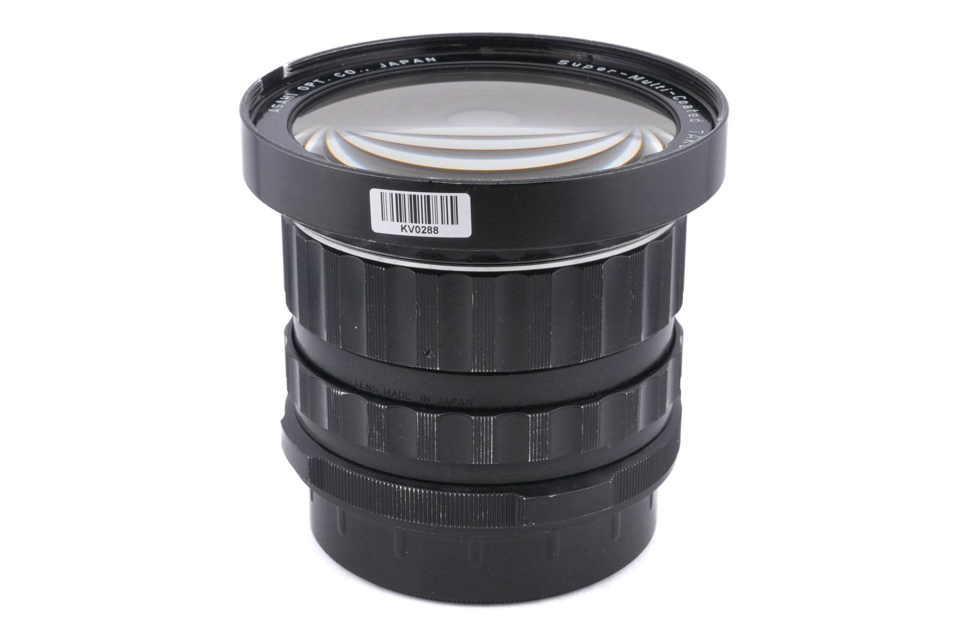 Manual focus wide-angle lens made for 6x7 mount 120 SLR cameras by Pentax starting in 1971. It gives the equivalent field of view to a 27.5mm lens on full frame/35mm. Metal body available in black.