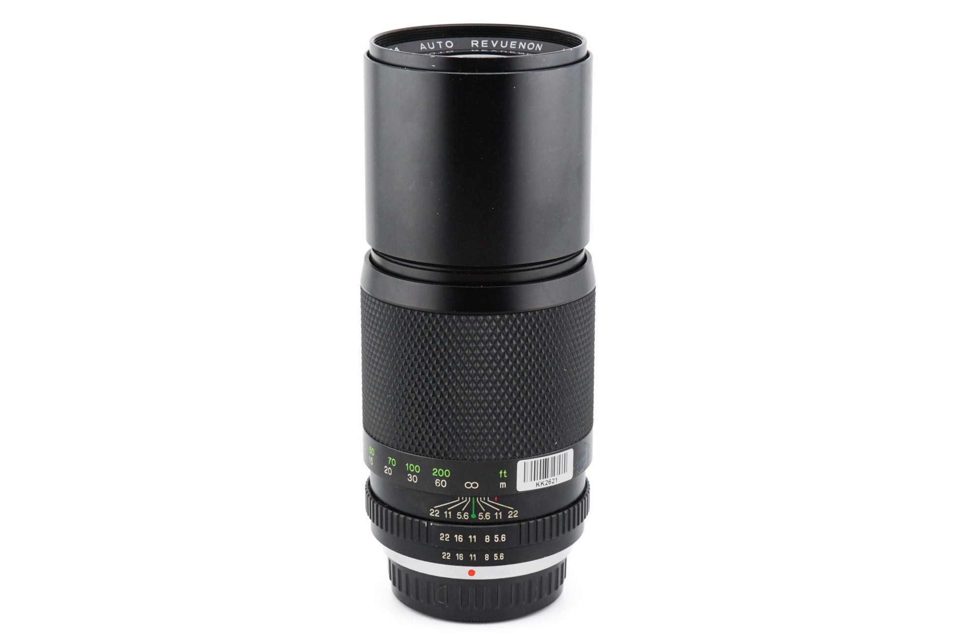 Manual focus telephoto lens made for Pentax K-mount SLR cameras by Revue. Metal body available in black.