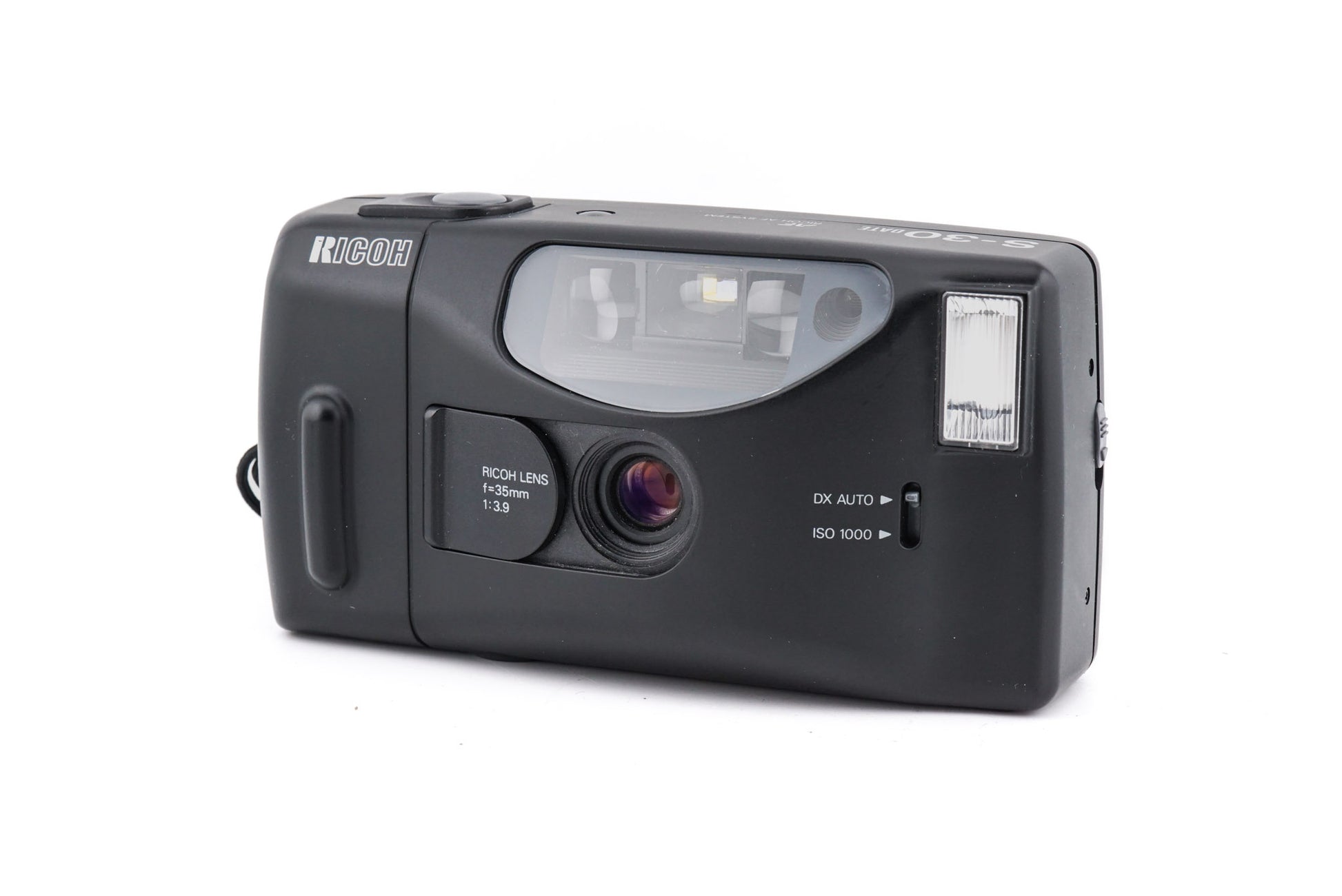 Autofocus 35mm compact camera released by Ricoh. Has a manual flash on/off switch, a sliding lens cover, and a switch for ISO 1000 film. Plastic body available in dark gray.