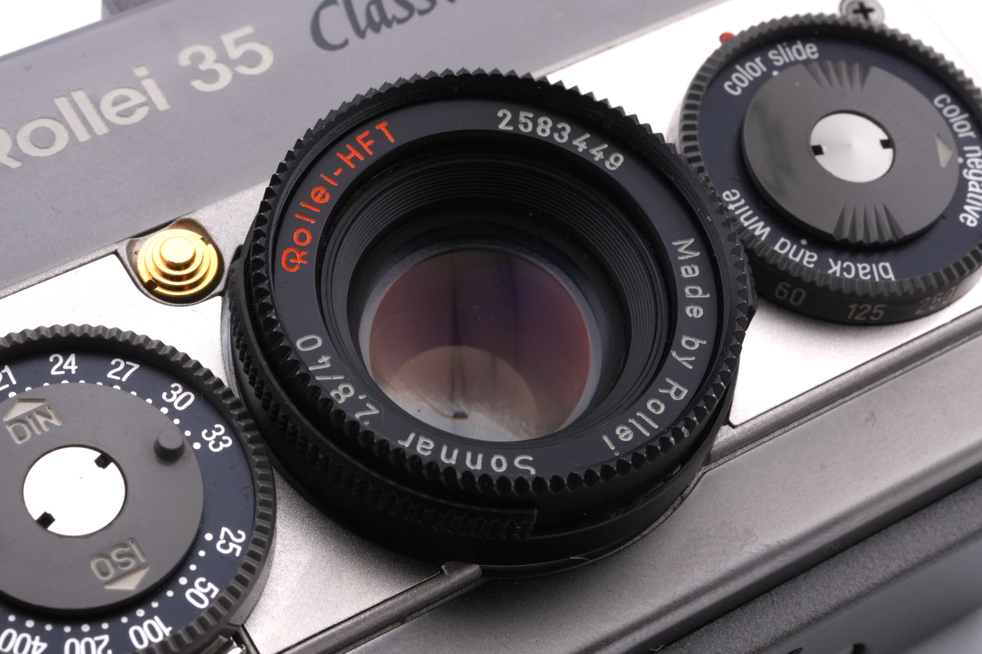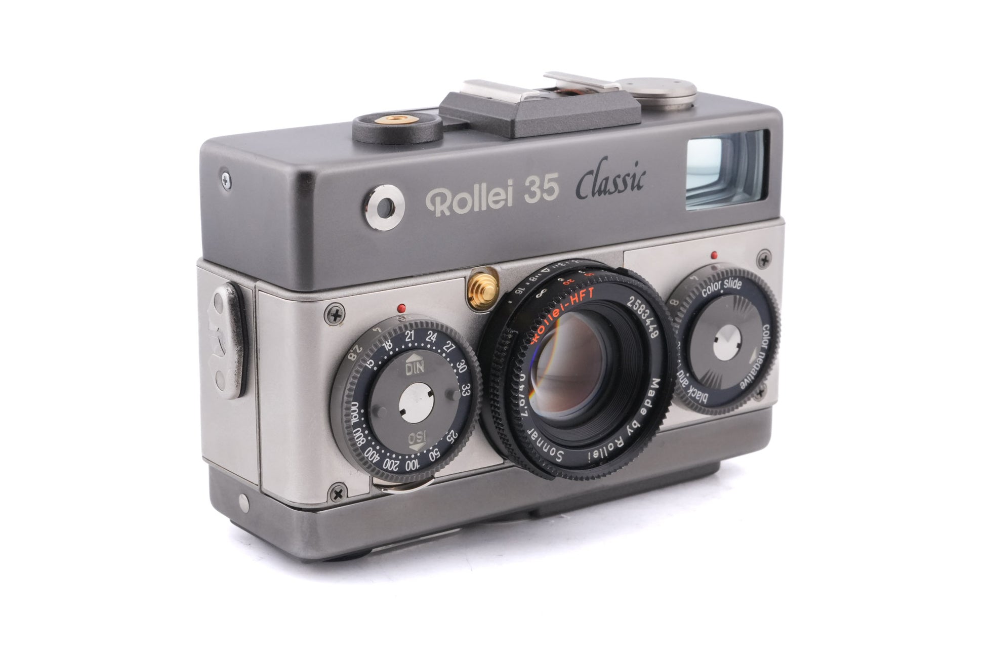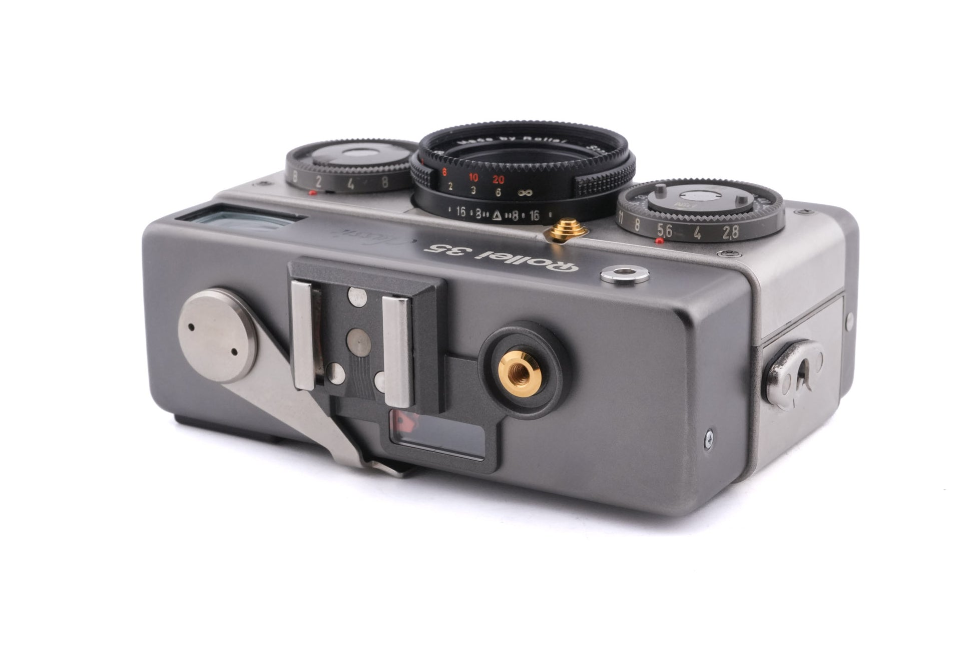 Manual focus 35mm viewfinder camera released by Rollei Fototechnic in 1990. Metal body available in three models: "Titan" (6480 units), "Platin" (1120 units), and "Black Metal" (1620 units).