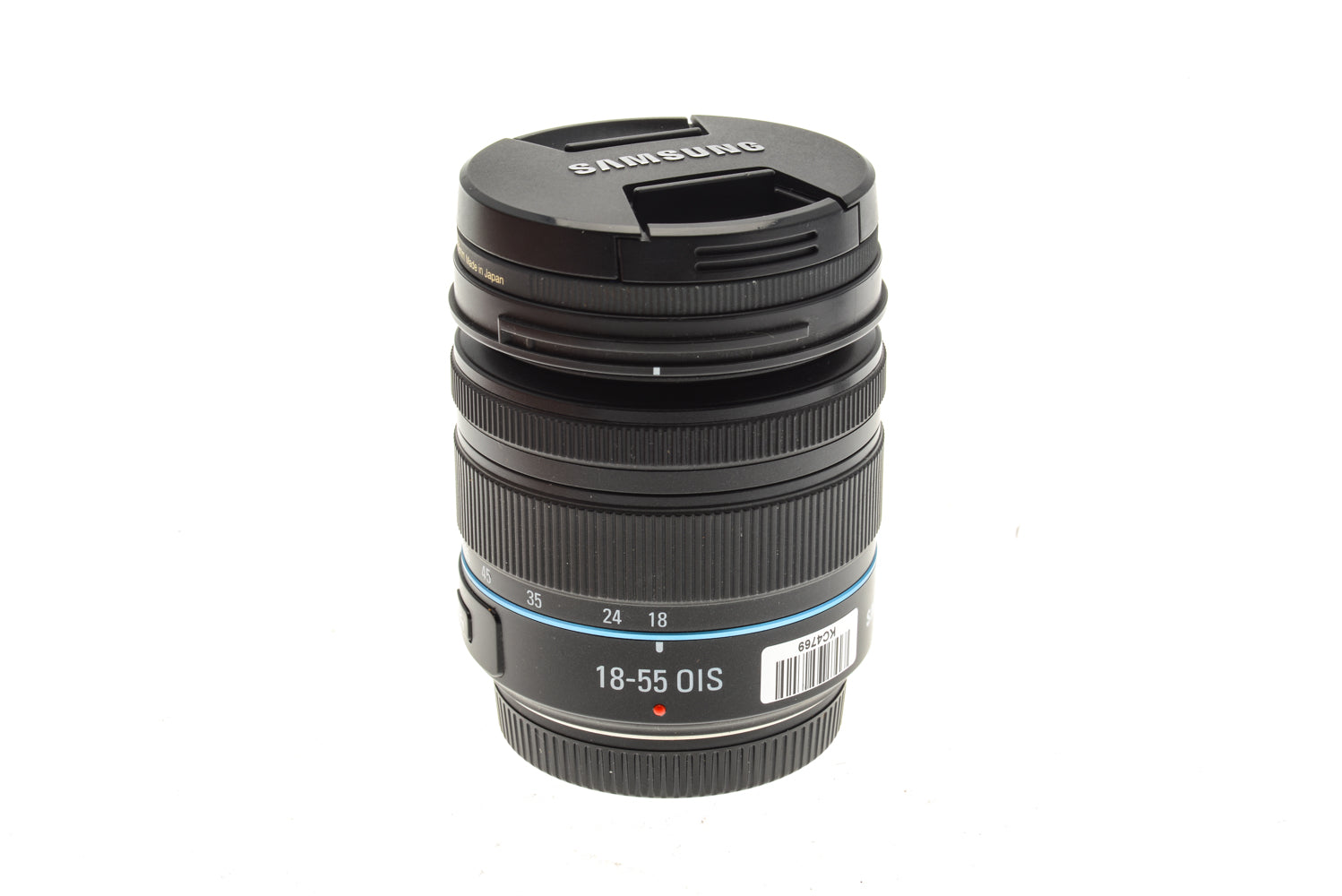 Kit lens for Samsung NX mount APS-C DSLRs. Has optical image stabilization and Samsung custom i-Function button. Equivalent to roughly a 28-85mm lens on full frame.