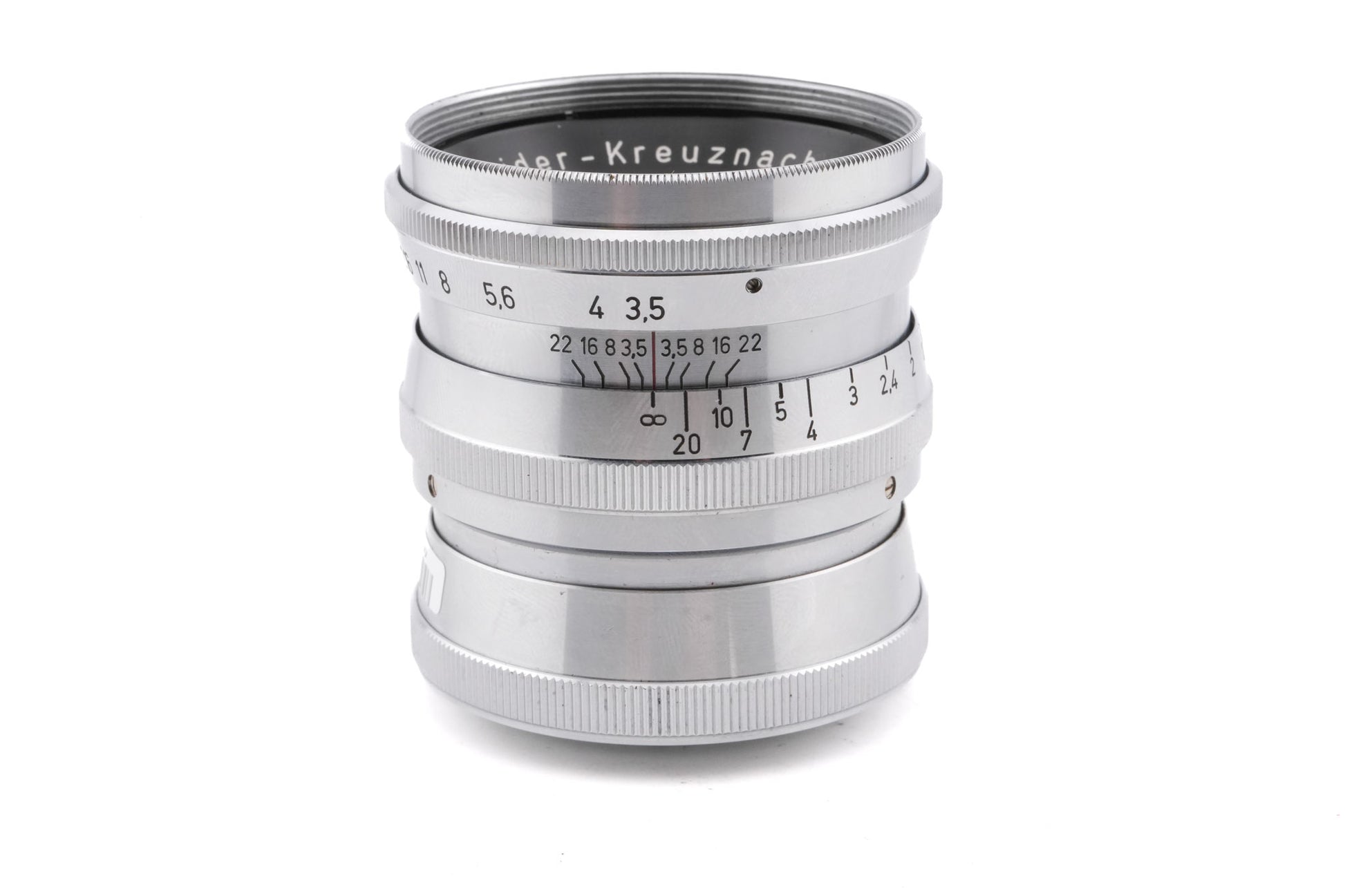 Manual focus short telephoto lens made for Akarette mount cameras by Schneider-Kreuznach. Made in Germany. Metal body available in silver.
