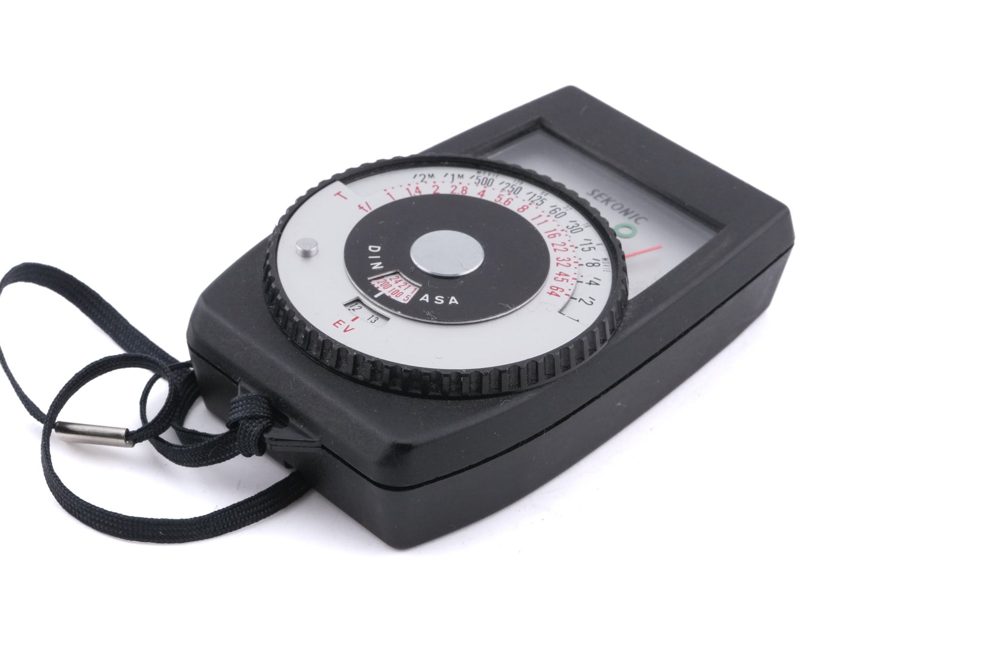 Compact selenium light meter from Sekonic. Plastic body available in black.