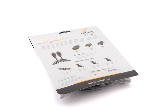 Tether cable made by Tether Tools for HDMI C to HDMI A. Plastic body available in black.