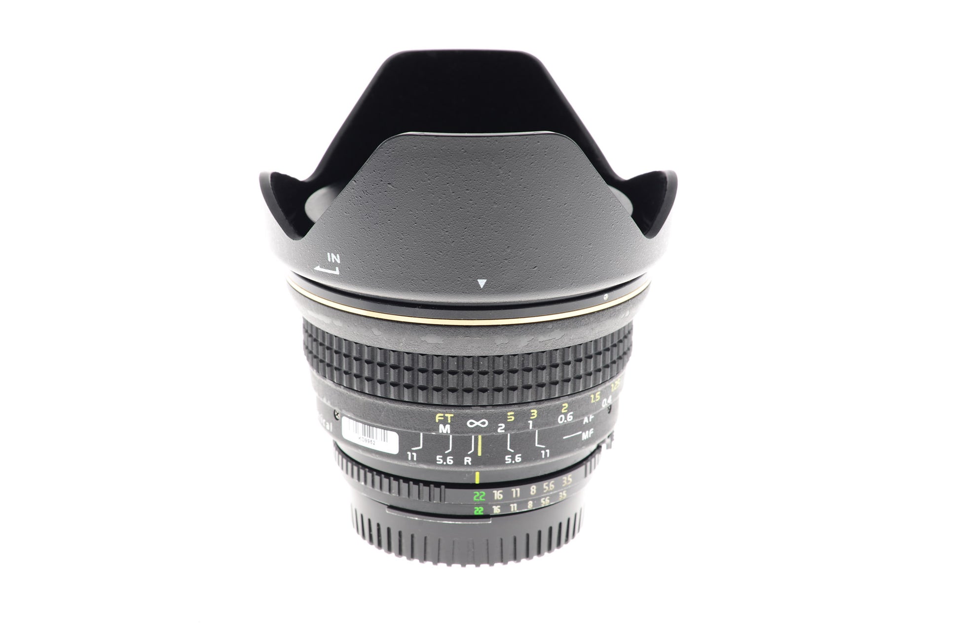 Tokina super wide angle lens with Nikon F mount. Metal body available in black.