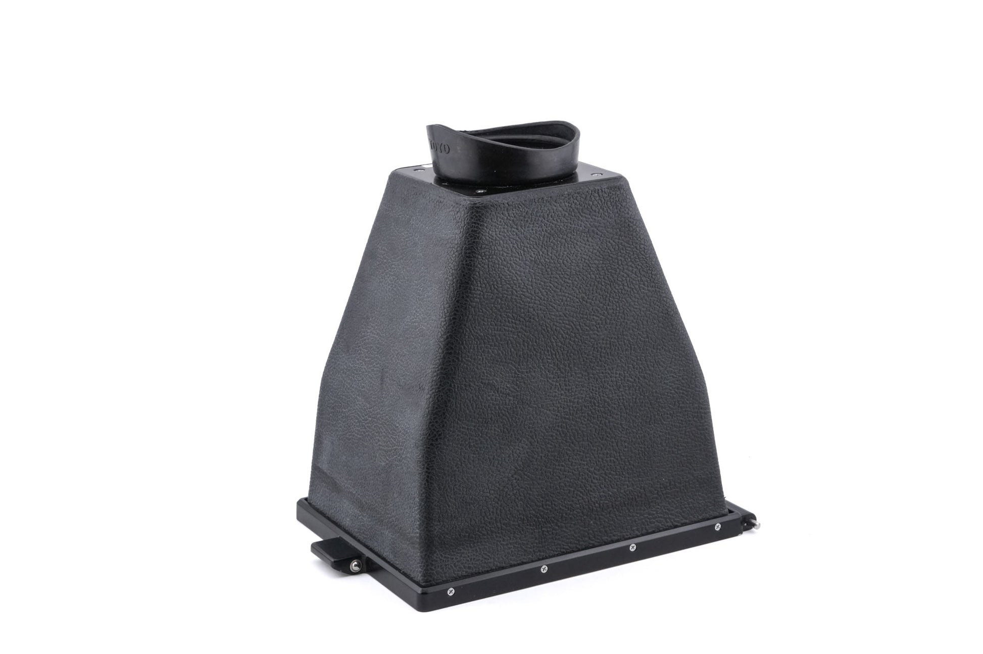 Rubber collapsible magnifying hood made for 4x5 view cameras introduced by Toyo. Rubber and plastic body available in black.