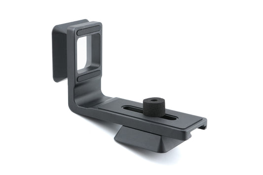 L-bracket made by Velbon. It attaches between the camera and a tripod and allows a quick transition between portrait and landscape orientation. Metal body available in black.