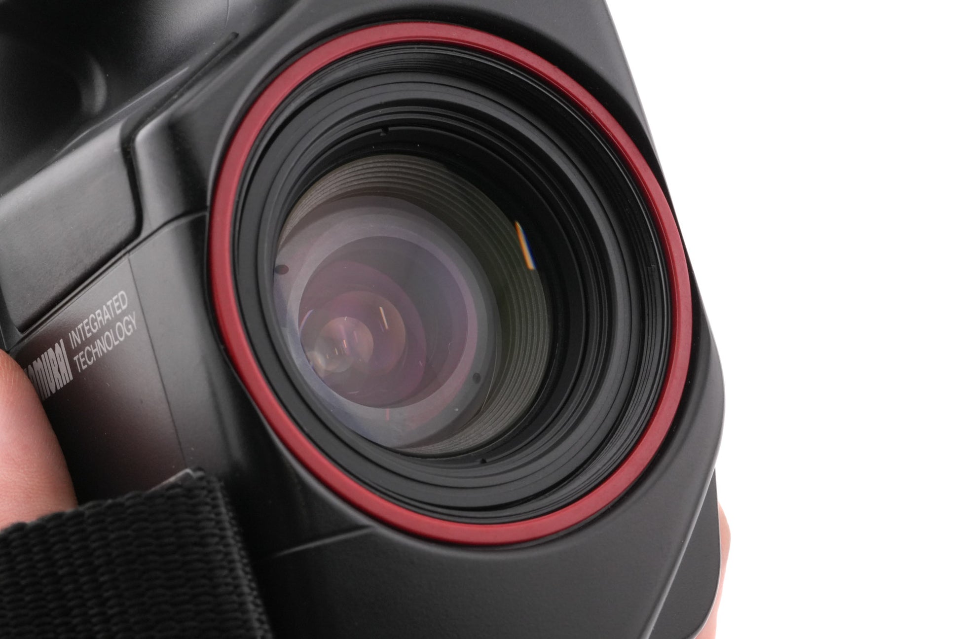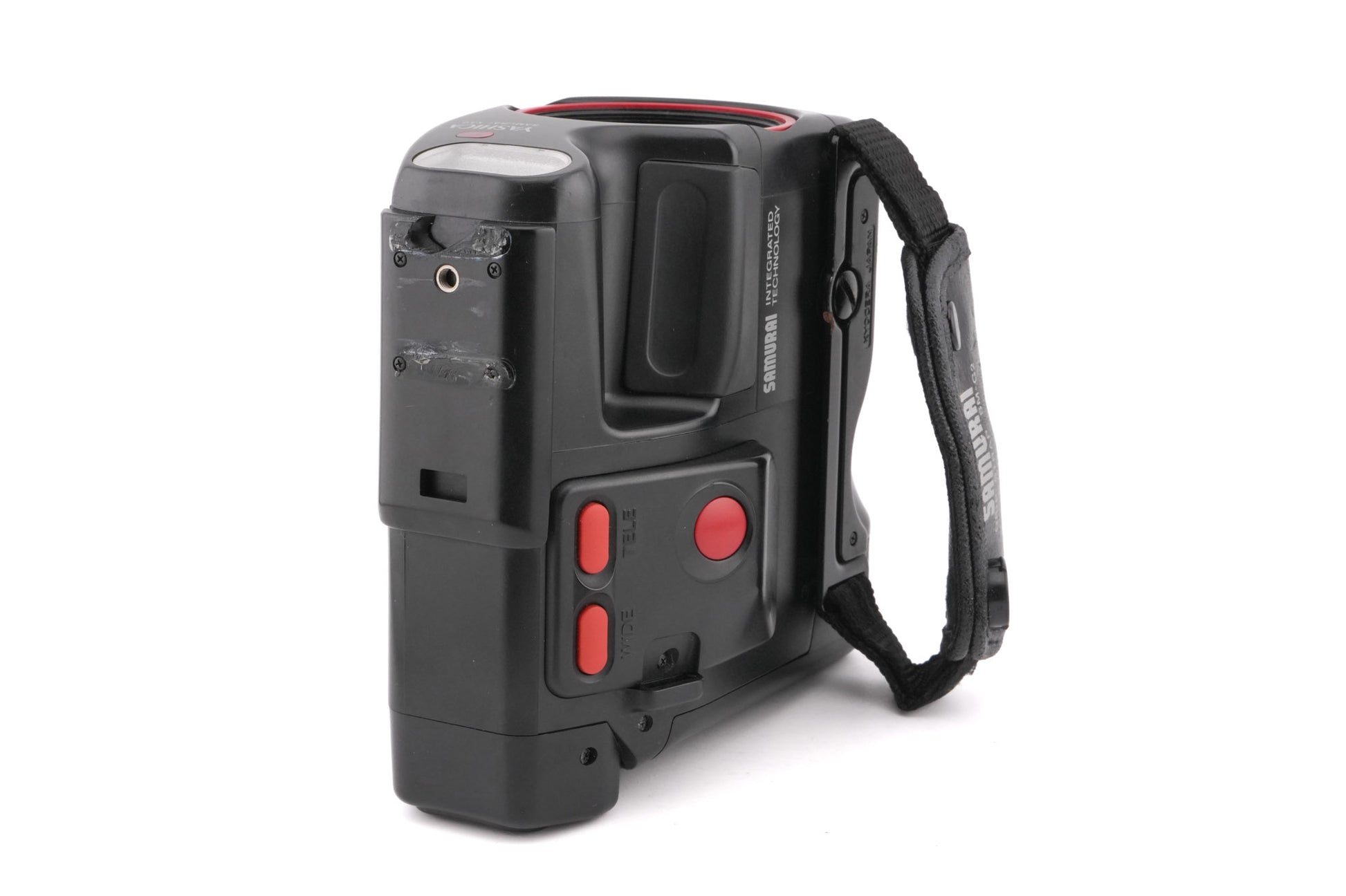 Autofocus 35mm half-frame point-and-shoot camera released by Yashica in 1987. The film runs vertically through the body, making the camera handle similar to camcorders of the era. Plastic body available in black.