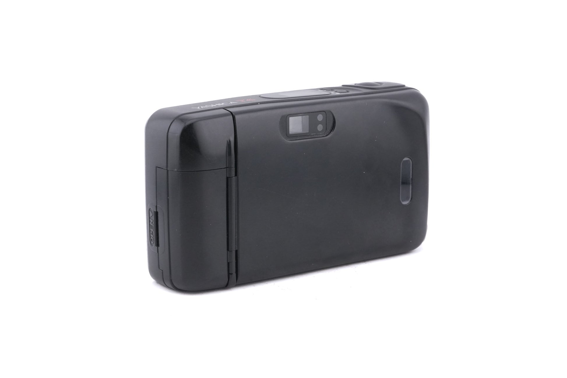 Autofocus 35mm point-and-shoot camera released by Yashica/Kyocera. The lens is affectionately referred to as the "Eagle Eye". Plastic body available in black.