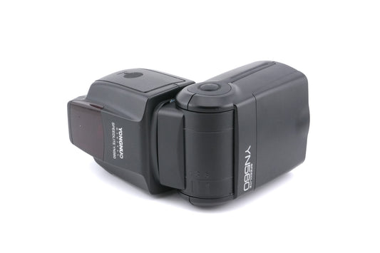 Flash made by Yongnuo. Has a single flash contact, so will only work in manual mode with any system. Can zoom to cover lenses from 24-105mm. Plastic body available in black.