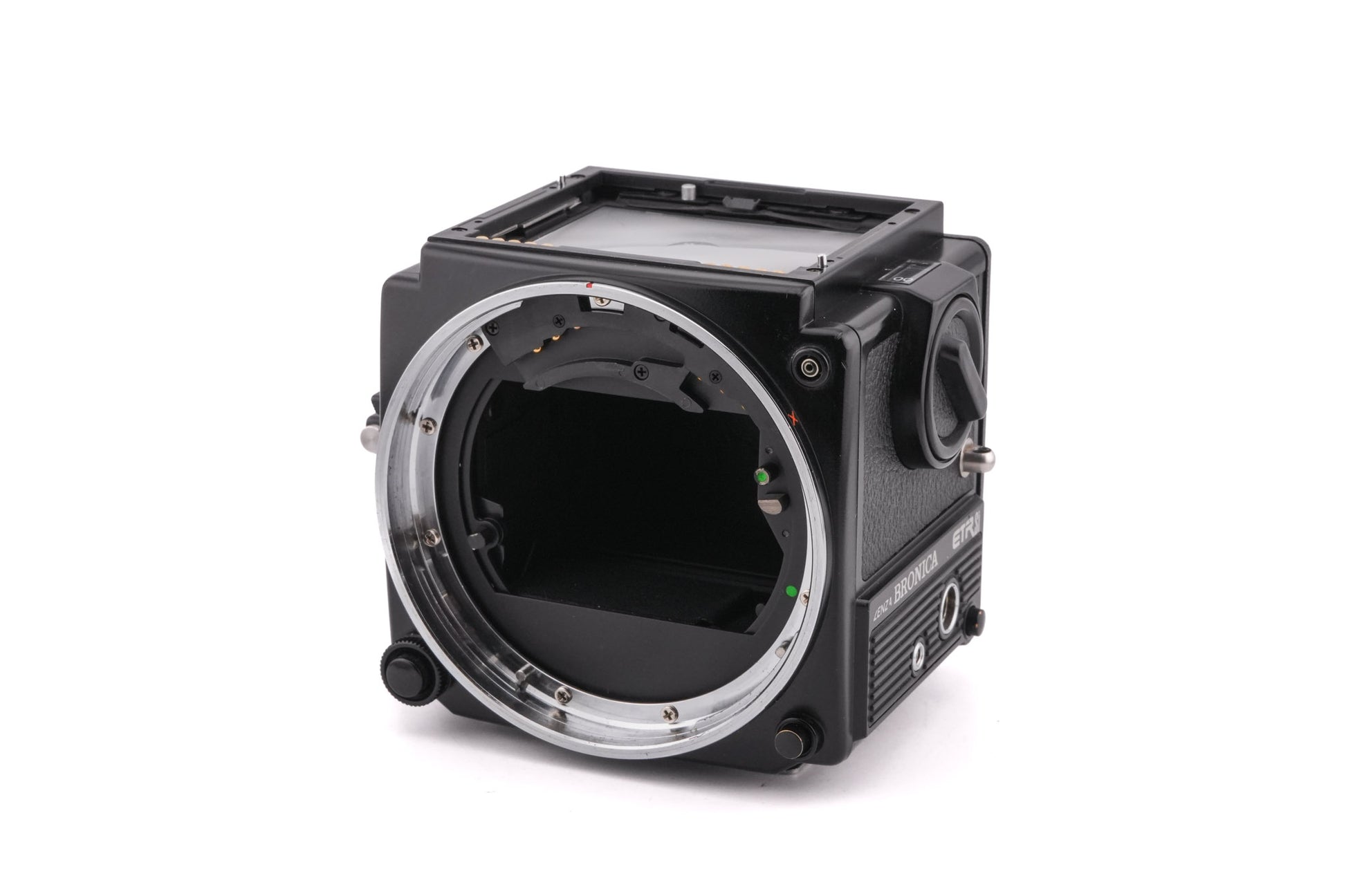 Manual focus modular SLR made by Zenza Bronica. It takes 6x4.5cm images on rolls of 120 or 220. The camera features flash sync at all speeds, double exposure, and mirror lock-up. The lenses have leaf shutters, but the speeds are controlled by the body. Plastic and metal body available in black.