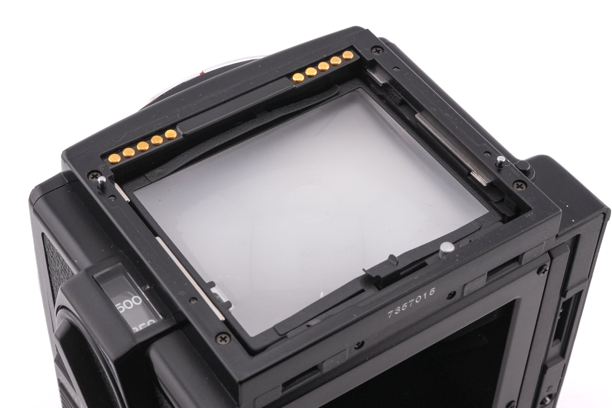 The focusing screen has some marks that will not affect use. The camera has some wear from use but is otherwise in good working condition.