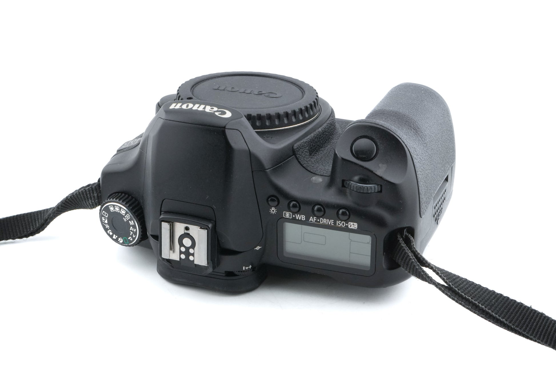 Autofocus EF-S mount digital SLR released by Canon in 2007. It has 9 autofocus points, interchangeable focusing screens, a 3" rear screen, and a built-in pop-up flash. It uses Compact Flash (CF) memory cards. Magnesium alloy body available in black.