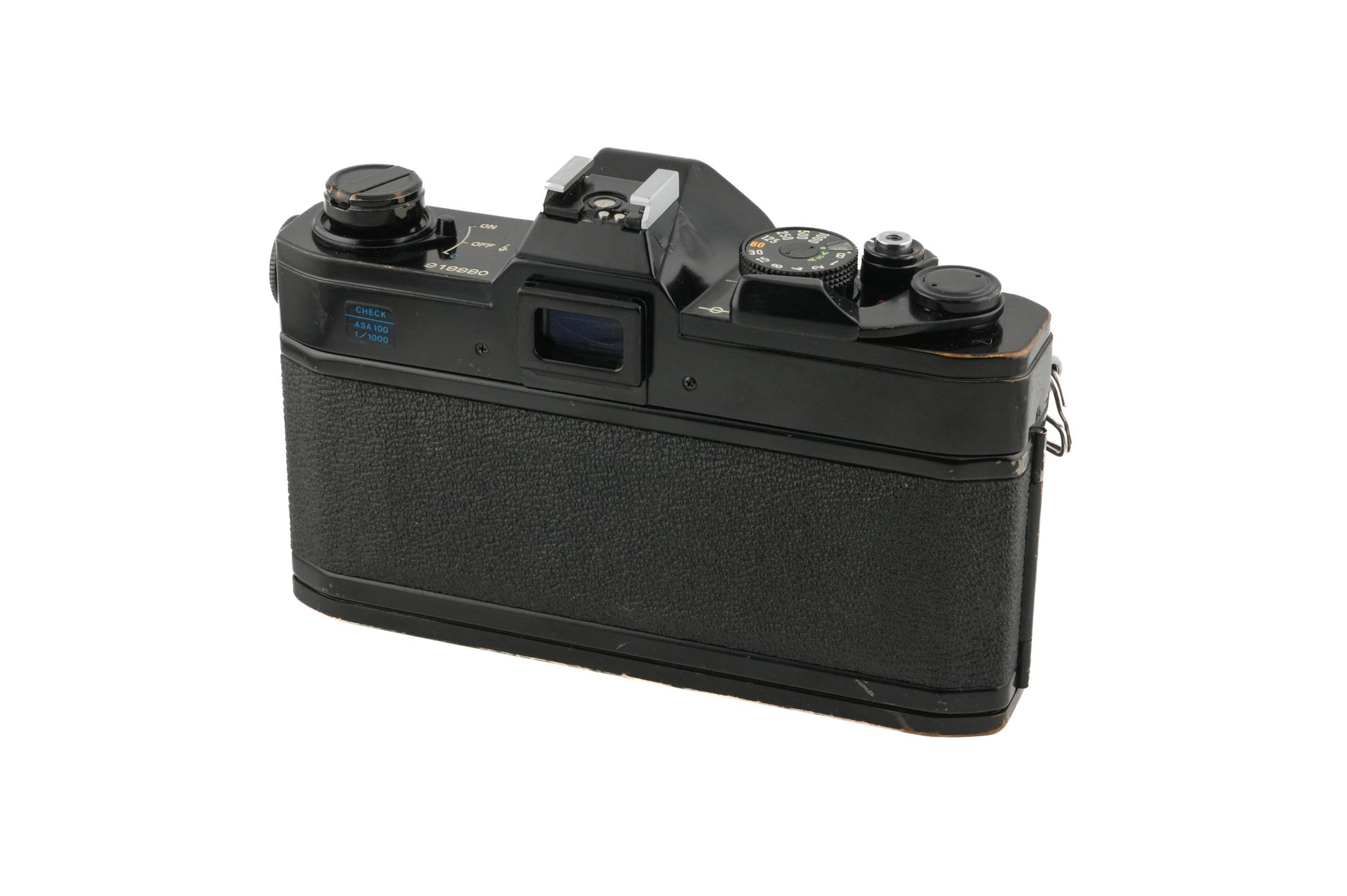 Manual focus 35mm FD-mount 35mm SLR camera released by Canon in 1971. Requires a PX625 mercury battery for the light meter, but can function without a battery as well. Has a self-timer and 1/60s flash synchronization. It uses Canon's Quick Loading (QL) system. Metal body available in black and silver.