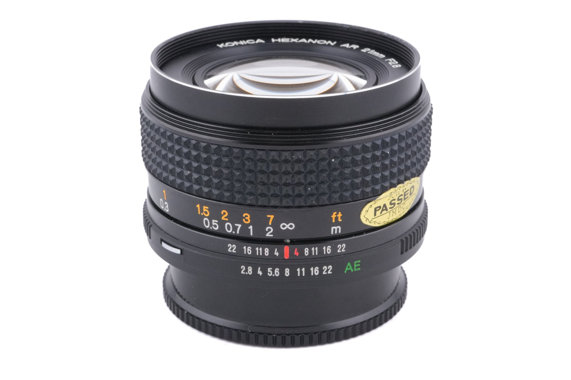 - Konica 21mm f2.8 Hexanon AR (11 elements, 7 groups)