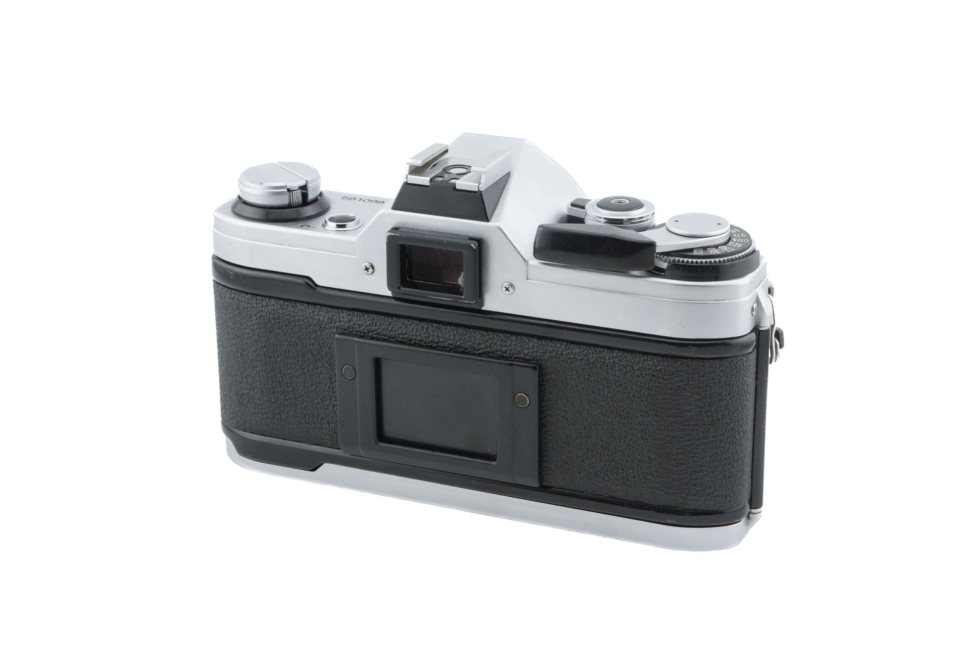 Manual focus FD-mount 35mm SLR camera released by Canon in 1976. It was the first SLR to feature a microprocessor for calculating exposure data. It features shutter priority autoexposure and fully manual exposure. Metal and plastic body available in silver and black.