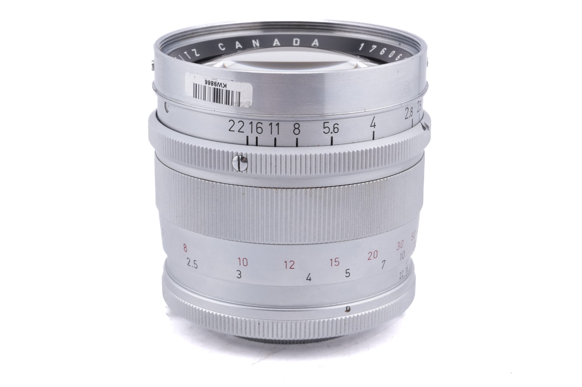Manual focus telephoto lens made for the Visoflex system introduced by Leica in 1954. It was produced in both Germany and Canada. It produces 2 1/2 times the magnification of a standard 50mm lens. The lens was specifically designed for the Visoflex I but can be adapted to the Visoflex II and IIa with the OUBIO (later 16466) adapter. Leica also made an adapter that allows it to be mounted directly onto the camera. It has a removable lens head that allows it to be used on the Leica Bellows I and II. The lens experienced many variations in engravings over the production years. Some have the distance scale in meters (11532), while others are in feet (11032). Metal body available in silver (HIKOO / 11532 / 11032).