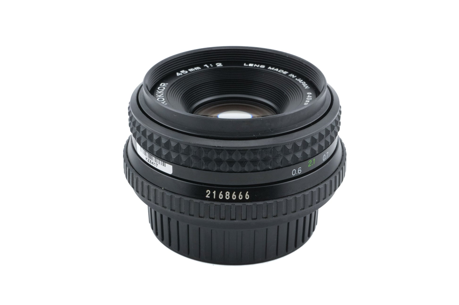- Minolta 45mm f2 MD Rokkor (6 elements, 5 groups)