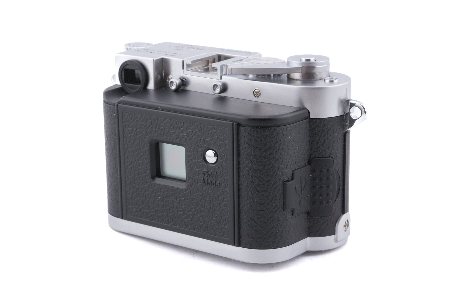 Manual focus digital compact camera produced by Minox. It's a replica of the Leica M3! The lens gives the equivalent field of view to a 42mm lens on full frame/35mm. Various versions were made with differing sensors and lenses, all for collecting purposes. Metal & plastic body available in silver.