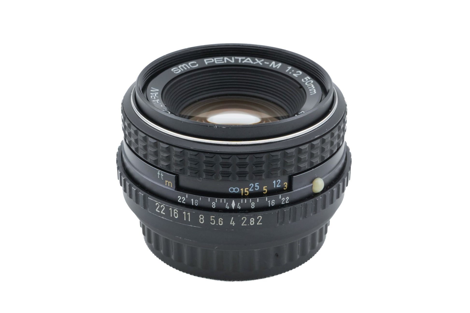 Manual focus normal lens made for K-mount 35mm SLR cameras introduced by Pentax. Early models were all-metal, but after the release of the Pentax-A line, some plastic parts were used. Metal and plastic body available in black.